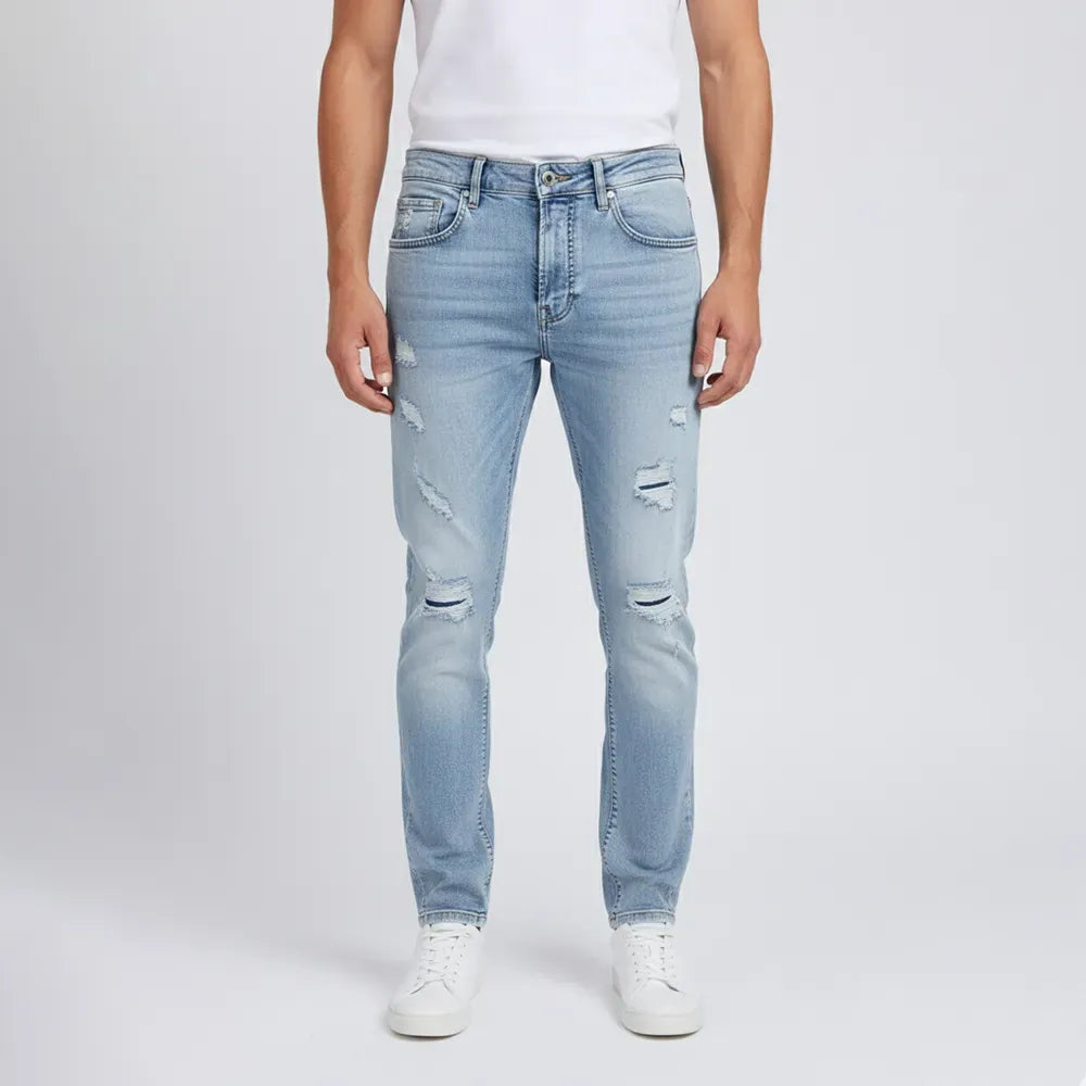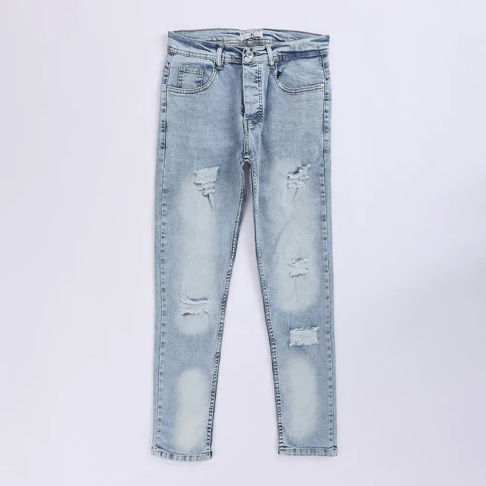 بنطلون جينز تقطيع رجالي نيو سكاي قطن جينز فاتح جميع المواسم من اس كيه اتش - 111793-LJ