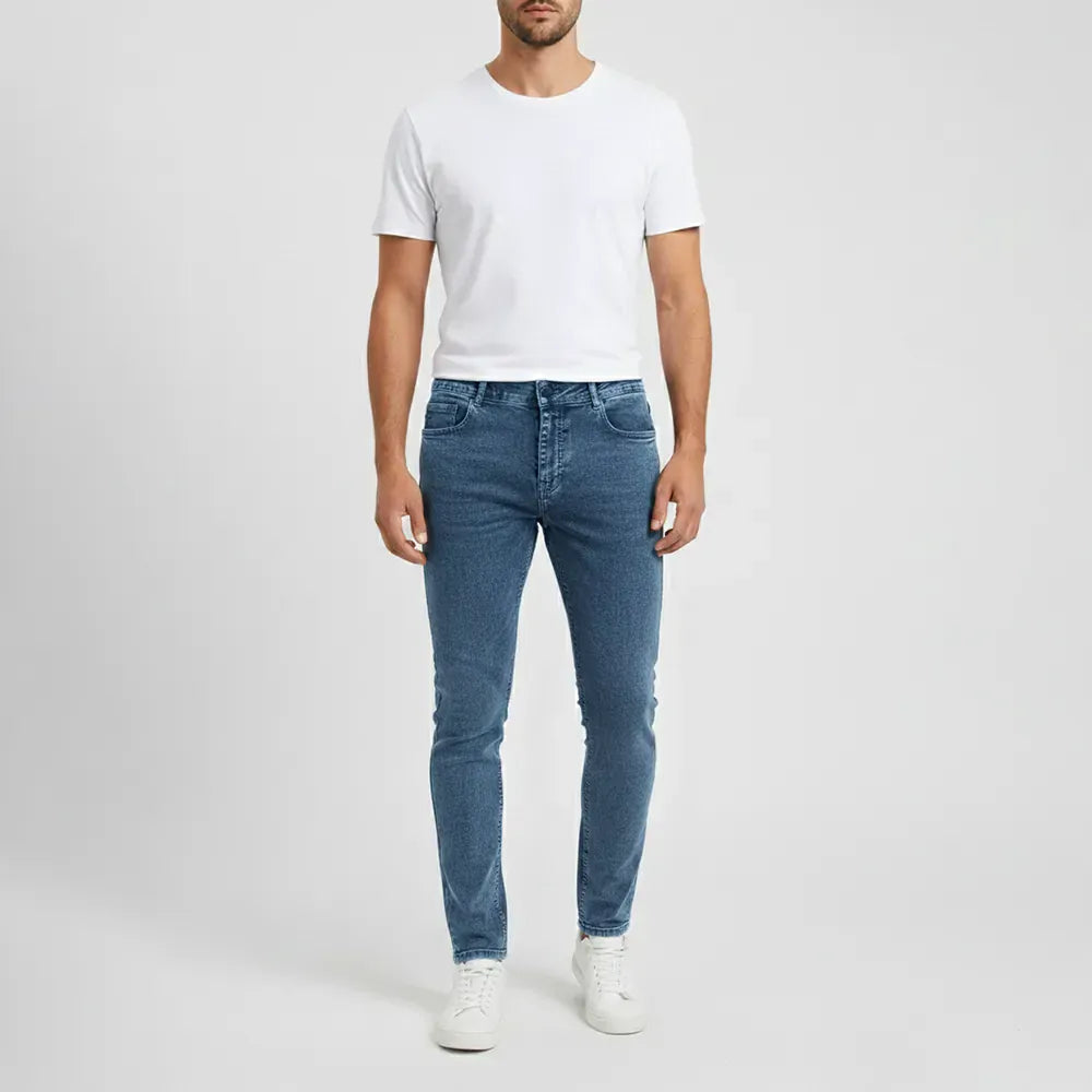 بنطلون جينز ساده رجالي نيو سكاي ليكرا جينز فاتح جميع المواسم من اس كيه اتش - 113030-LJ