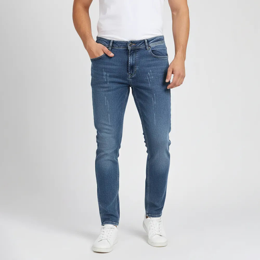 بنطلون جينز مخربش رجالي نيو سكاي ليكرا رمادي غامق جميع المواسم من اس كيه اتش - 113031-DJ