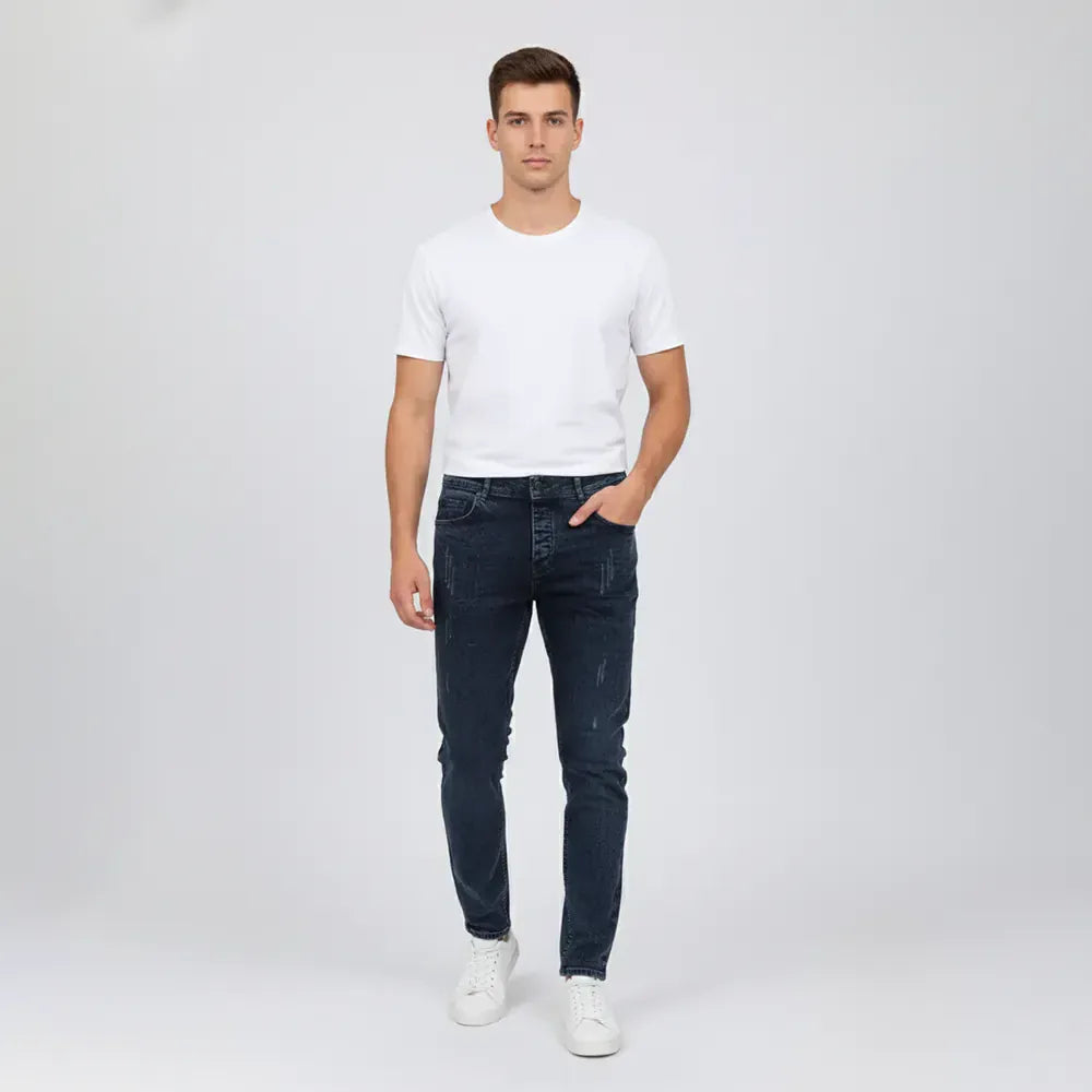 بنطلون جينز مخربش رجالي نيو سكاي ليكرا كحلي جميع المواسم من اس كيه اتش - 113031-NV