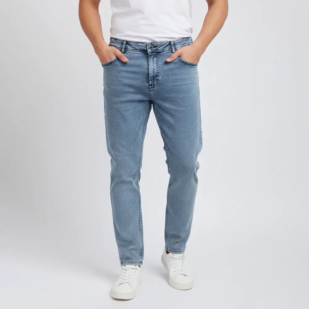 بنطلون جينز مخربش رجالي نيو لاند جينز فاتح جميع المواسم من اس كيه اتش - 113091-LJ
