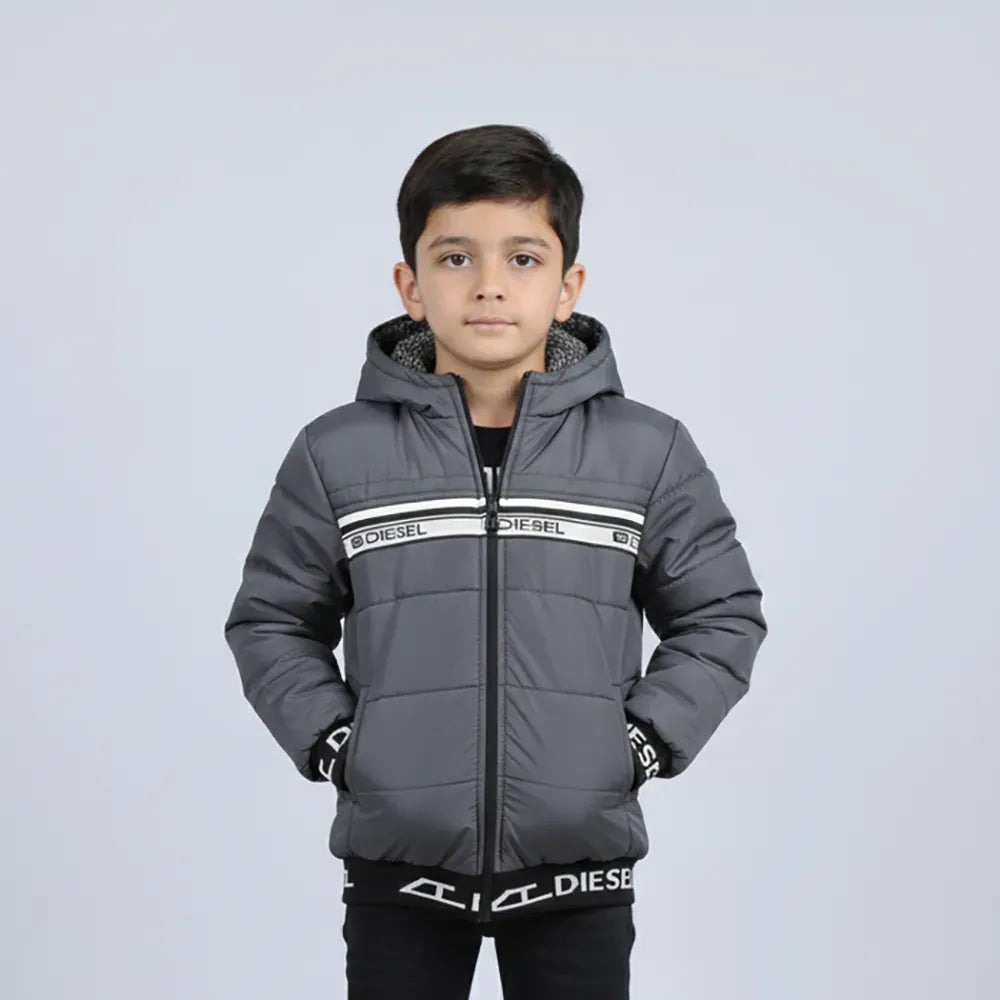 جاكيت بامب ساده اولادي سوفت رمادي غامق شتوي من اس كيه اتش - 113124-DG