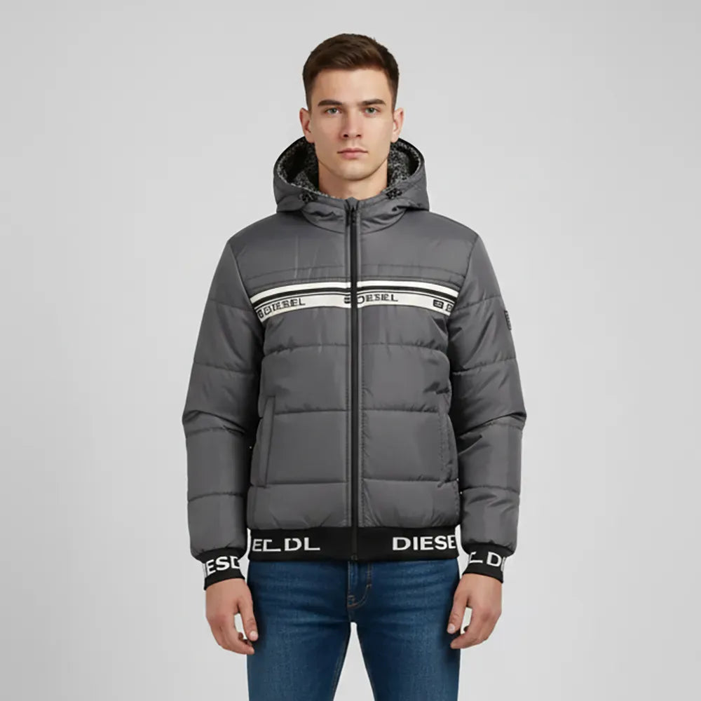 جاكيت بامب ساده رجالي سوفت رمادي غامق شتوي من اس كيه اتش - 112965-DG