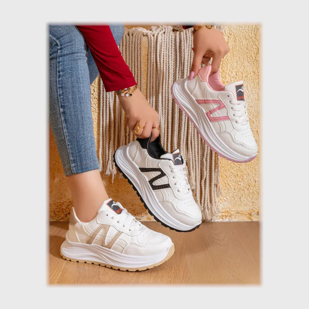 حذاء سنيكرز حريمى فوندي جلد إسكاي مستورد ونعل PVC حقن الوان متعددة جميع المواسم من كيو ار - 2980