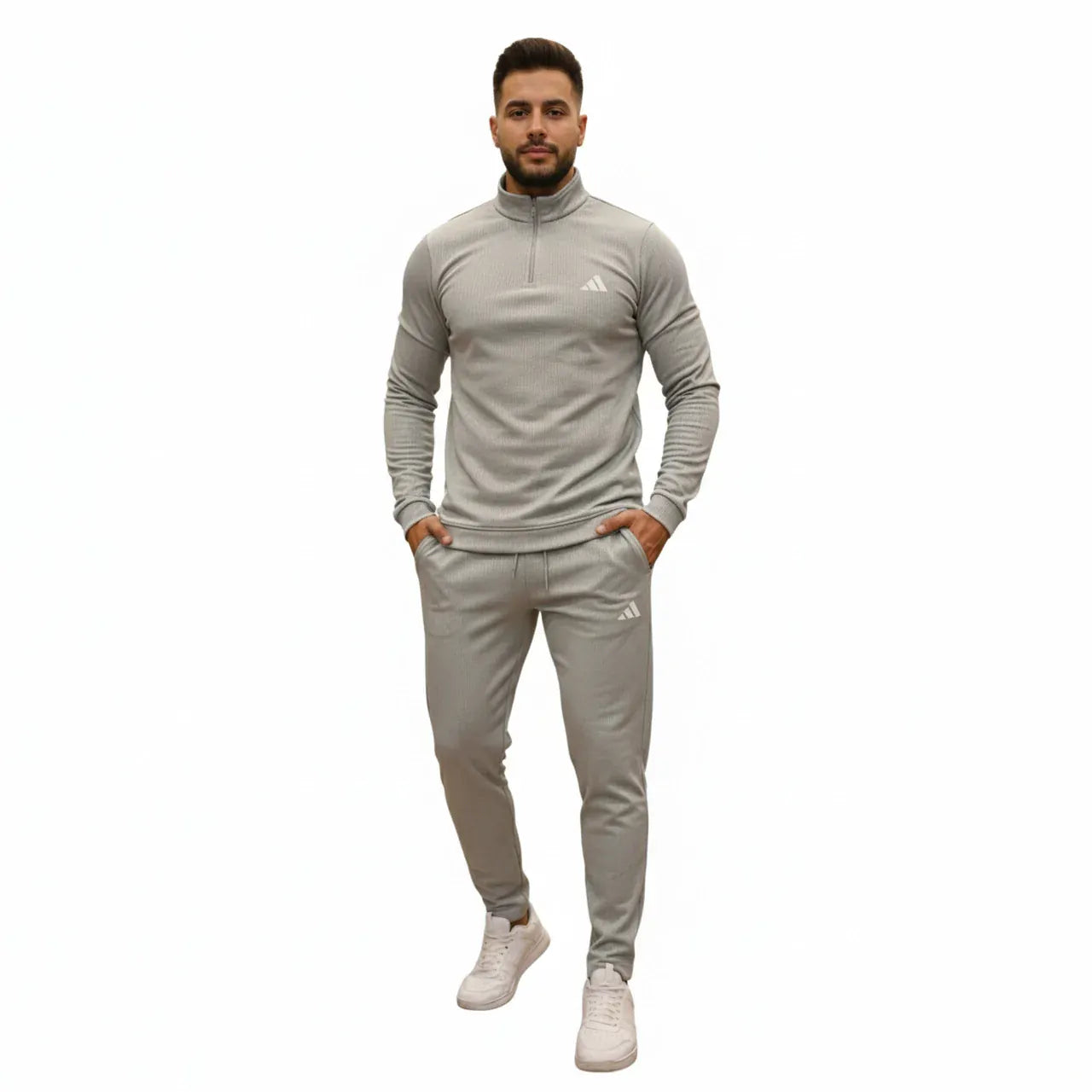 طقم تريننج رجالي مارسيليا مبطن رمادي فاتح شتوي من كيه إتش إل - TR-ADIDAS-Light-Grey