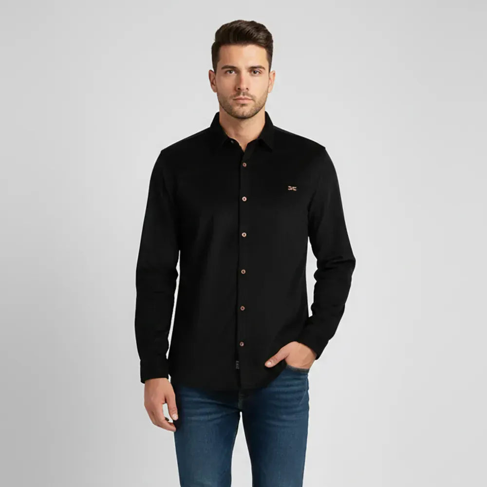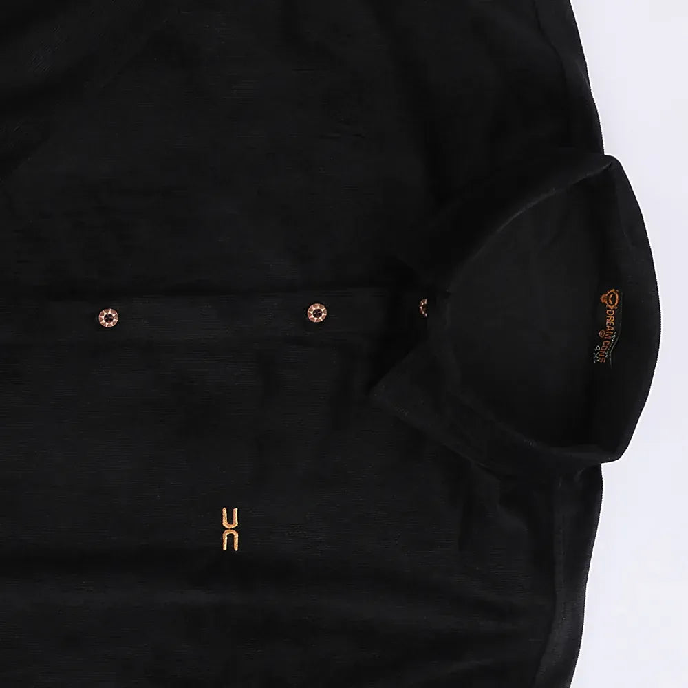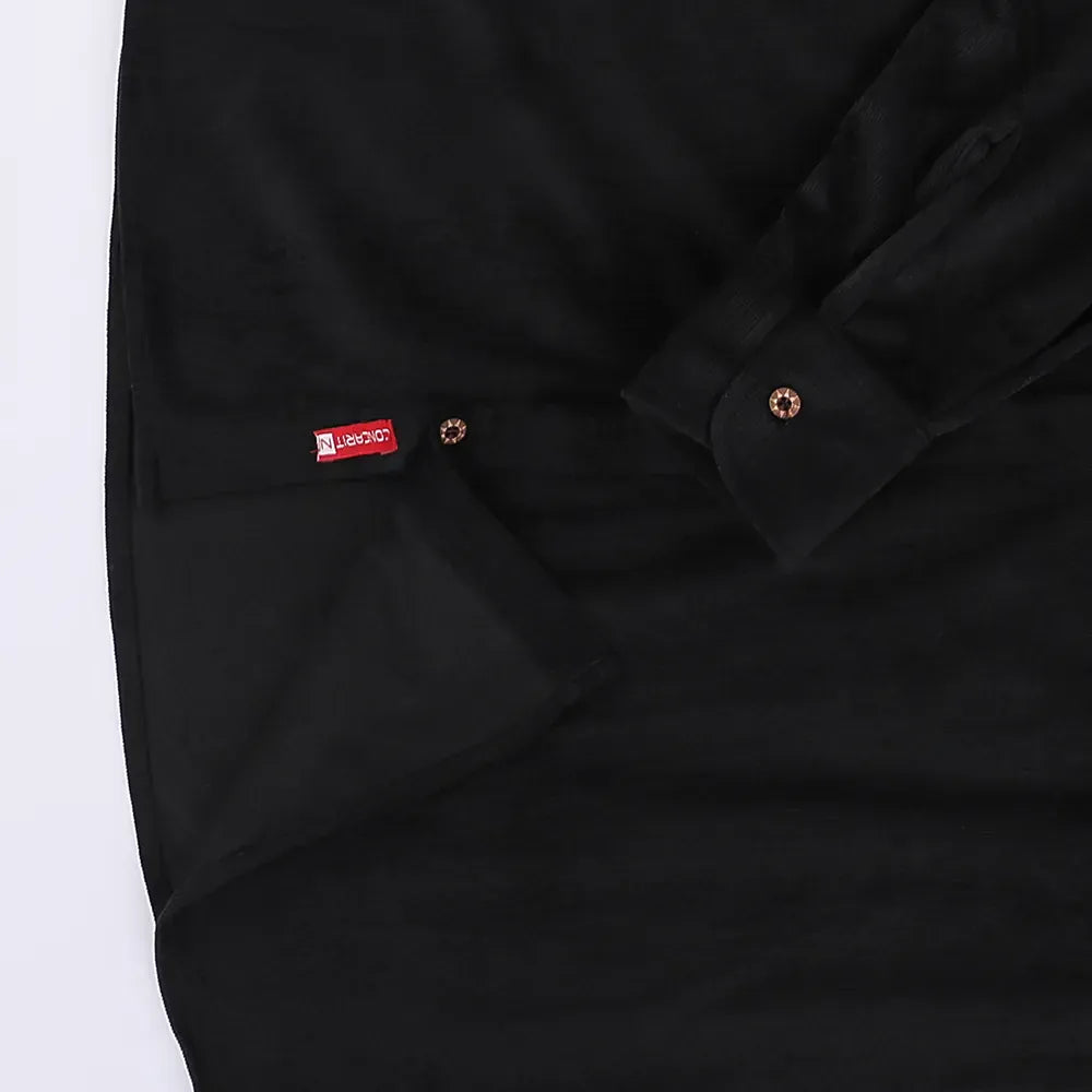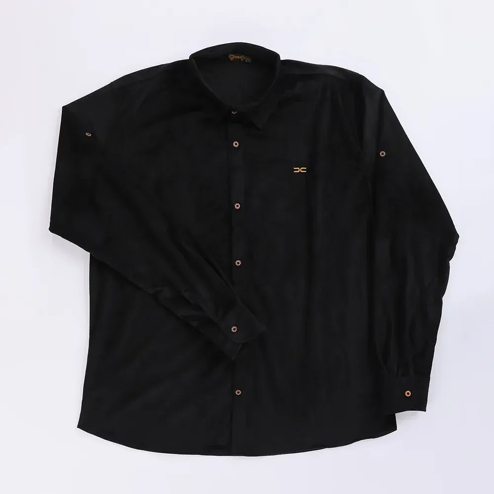 قميص مضلع ساده رجالي قطيفه اسود شتوي من اس كيه اتش - 112893-BK