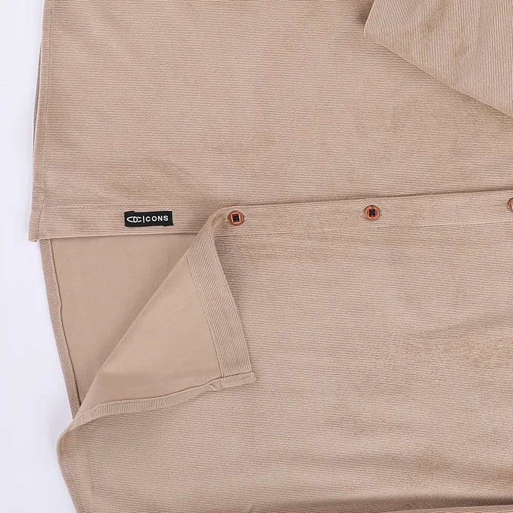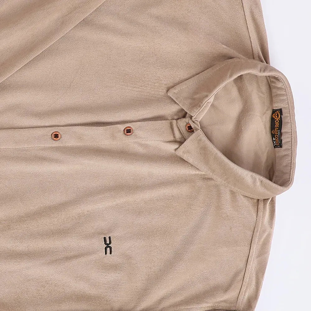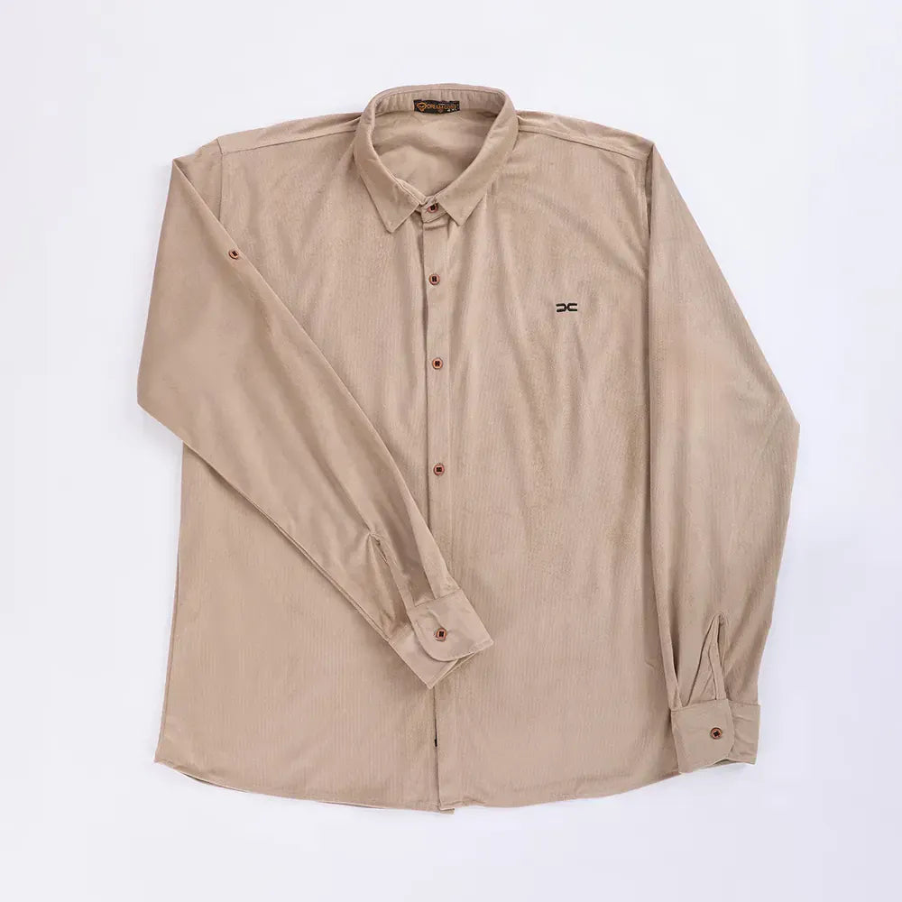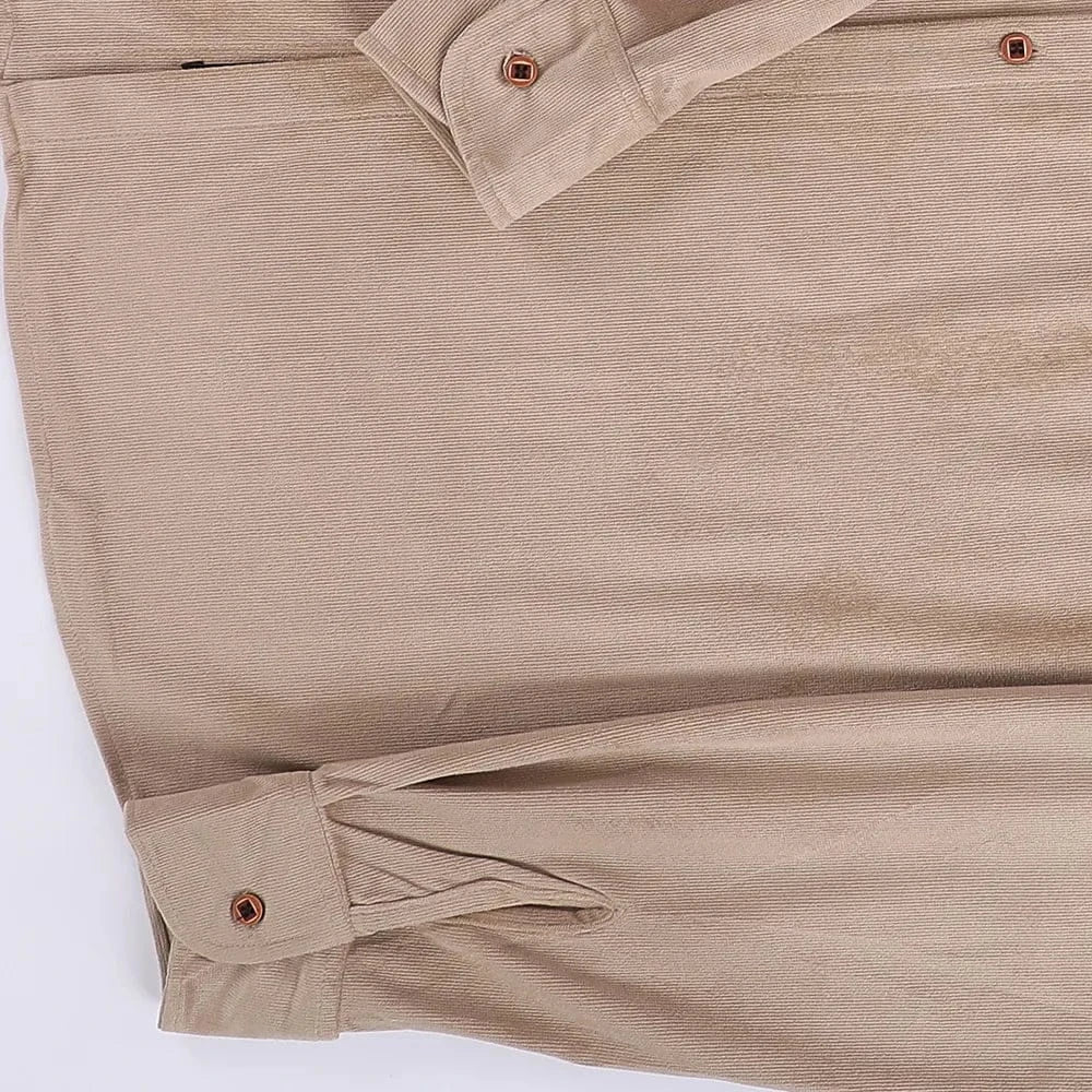 قميص مضلع ساده رجالي قطيفه بيج شتوي من اس كيه اتش - 112893-BJ