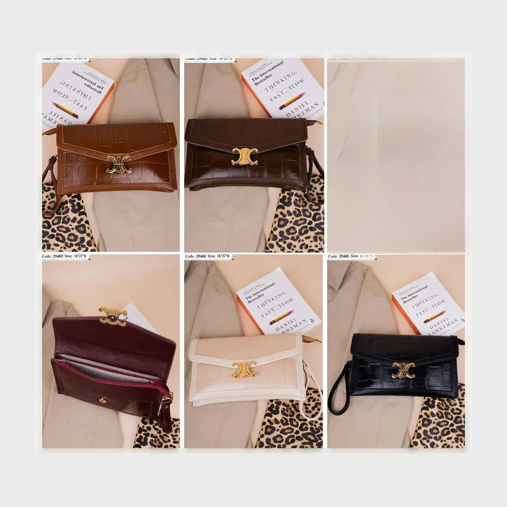 المقاسات: 16*27*6 العلامة التجارية: المتحف للشنط نوع المنتج : محفظة اللون: الوان متعددة وصف المنتج: محفظة يد الخامة: جلد الفئة المستهدفة: حريمى