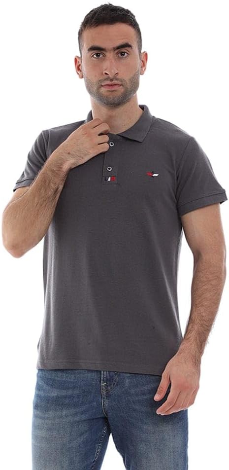تيشيرت بولو رجالي قطن رمادي غامق صيفي من ازياء-RR-16