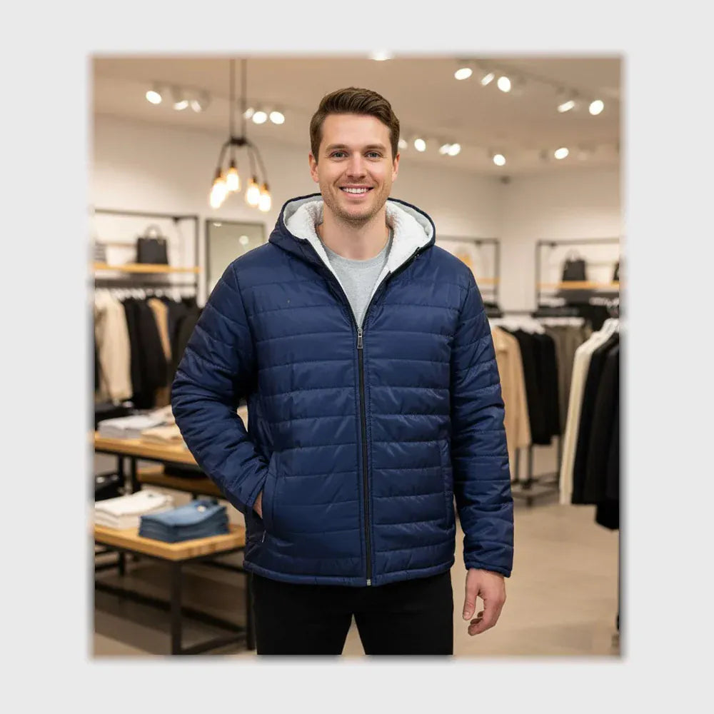 المقاسات: M-L-XL-2XL العلامة التجارية: كيه اتش ال نوع المنتج : جاكيت اللون: كحلي وصف المنتج: جاكيت بامب بكابيشوه ووتر بروف مبطن فرو الخامة: سوفت الفئة المستهدفة: رجالي