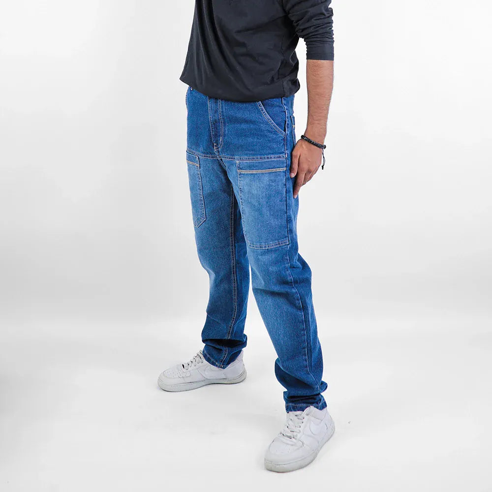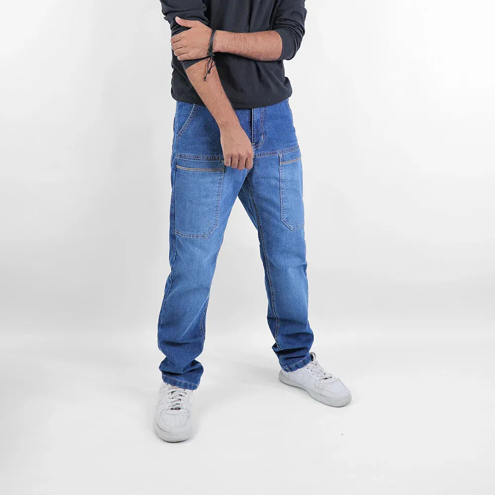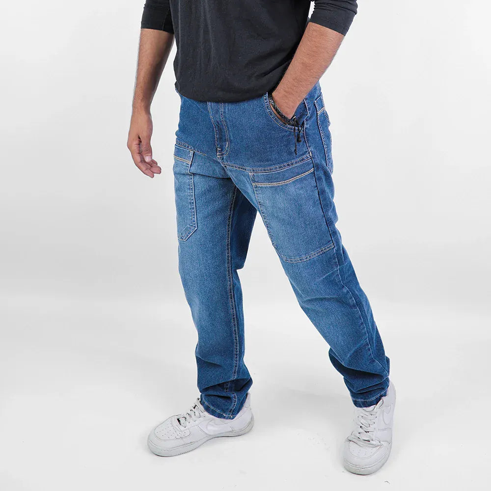 بنطلون سلم رجالي جينز رباعية 98% قطن 2% ليكرا كحلي وسط جميع المواسم من إيجي وير جينز - slm05-433-medum blue