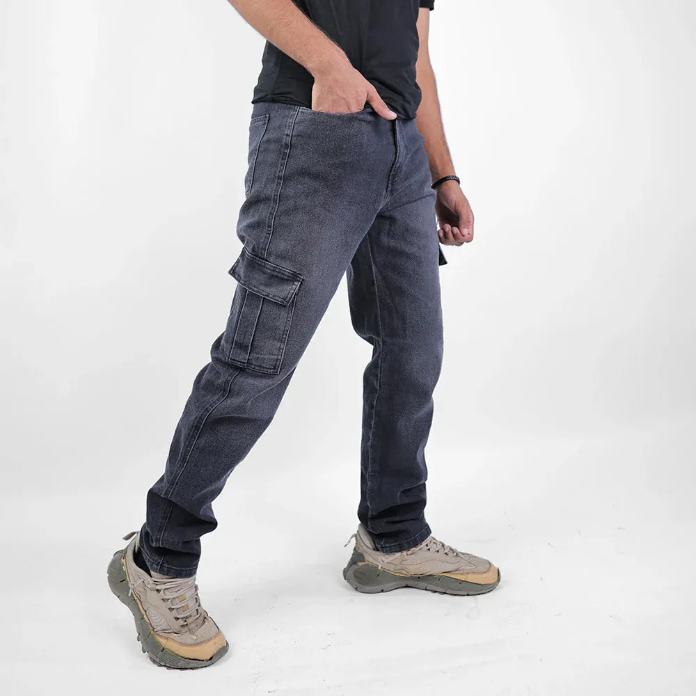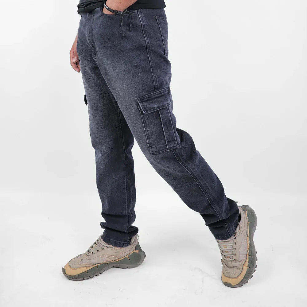 بنطلون كارجو رجالي جينز رباعية 98% قطن 2% ليكرا رمادي غامق جميع المواسم من إيجي وير جينز - slm04-393-dark grey