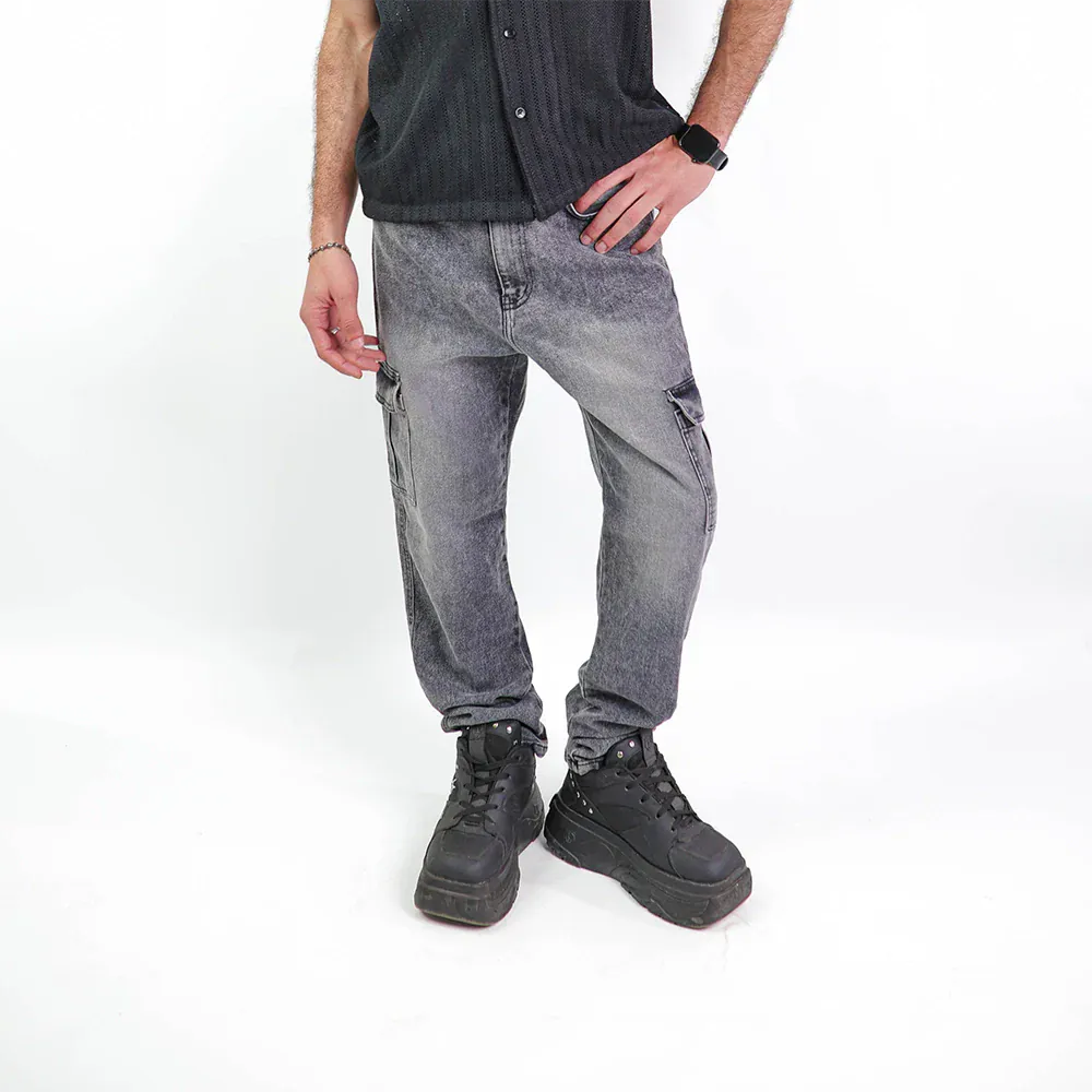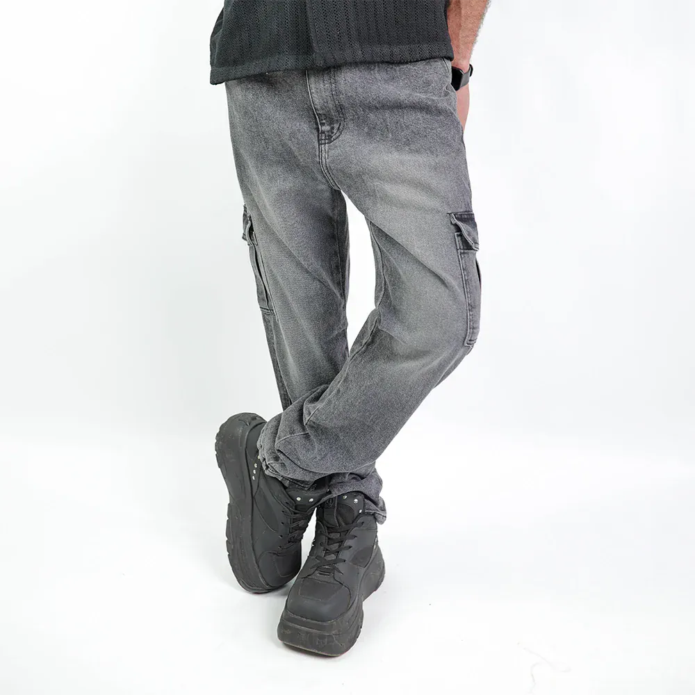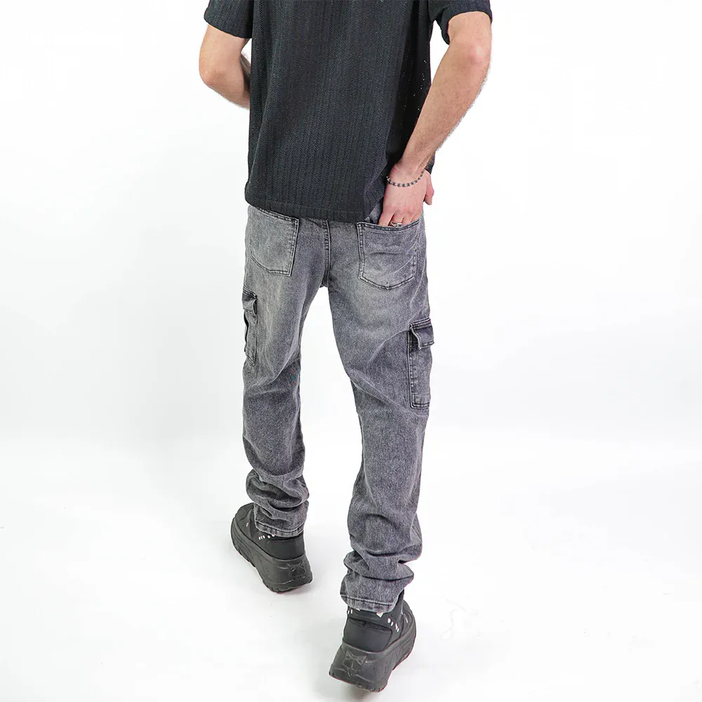 بنطلون كارجو رجالي جينز رباعية 98% قطن 2% ليكرا رمادي فاتح جميع المواسم من إيجي وير جينز - slm04-393-light grey