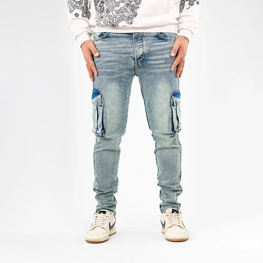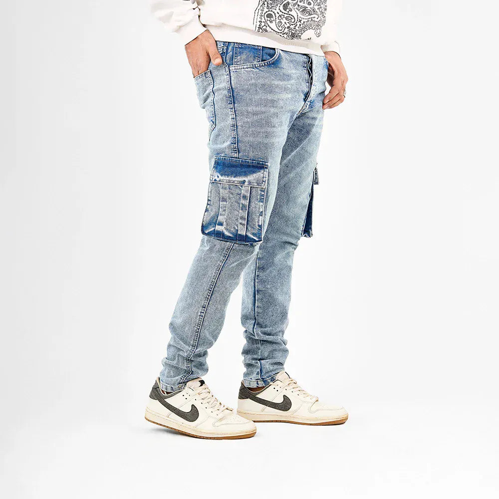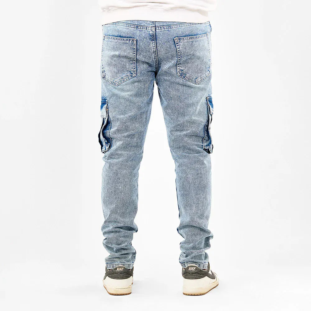 بنطلون كارجو رجالي جينز رباعية 98% قطن 2% ليكرا كحلي فاتح جميع المواسم من إيجي وير جينز - skm02-490-light blue