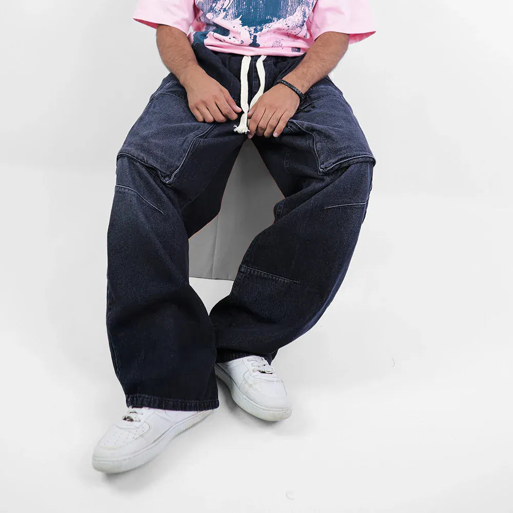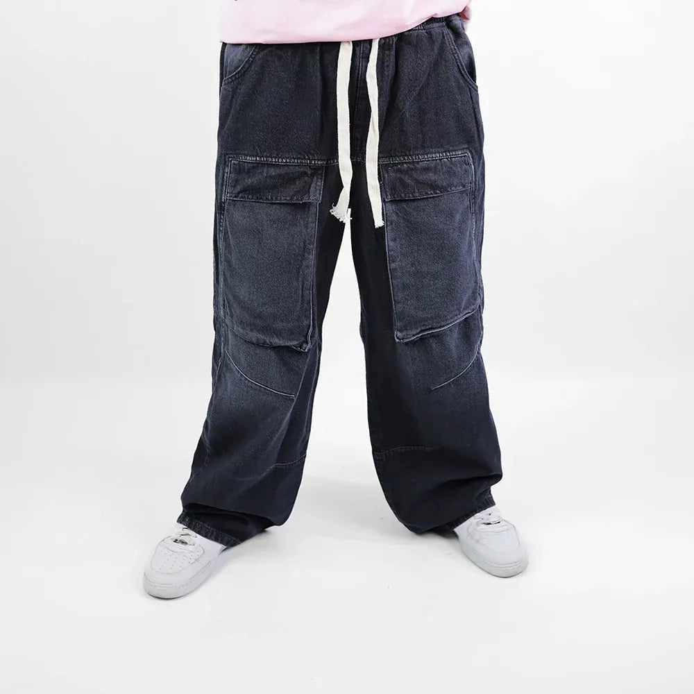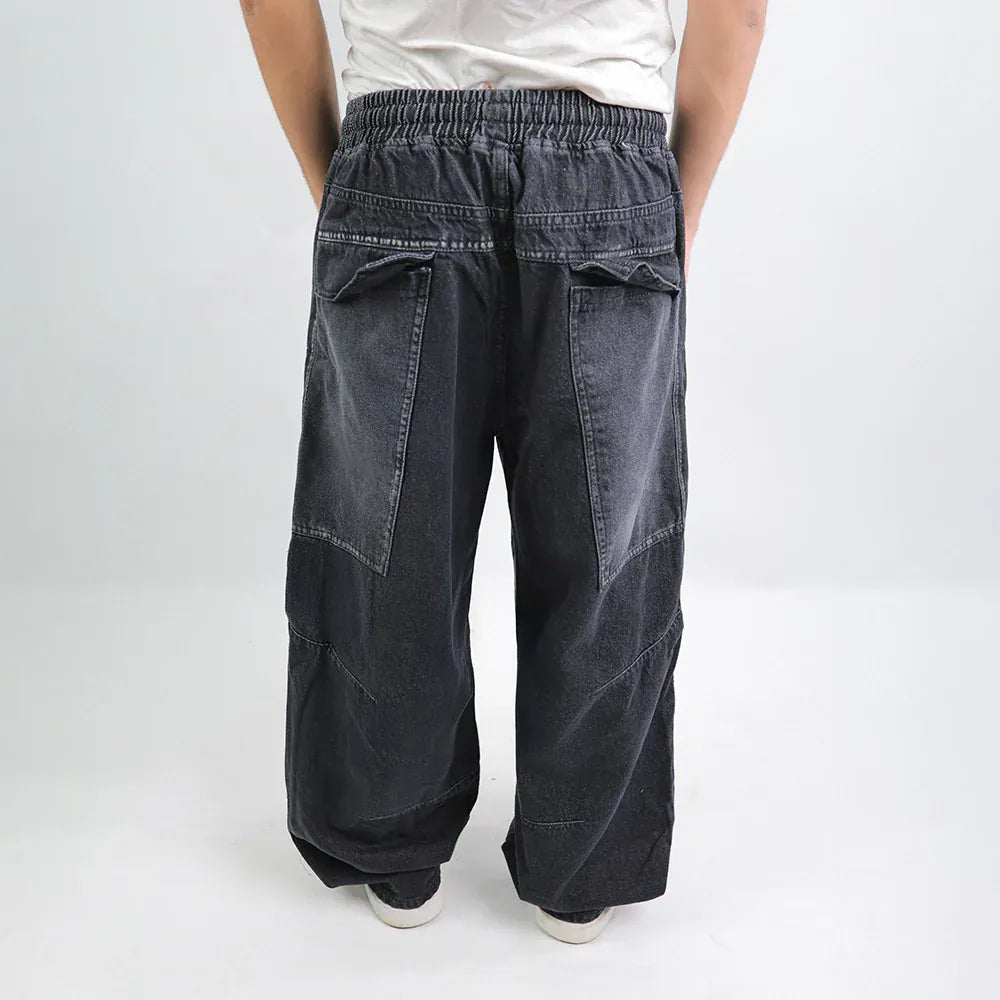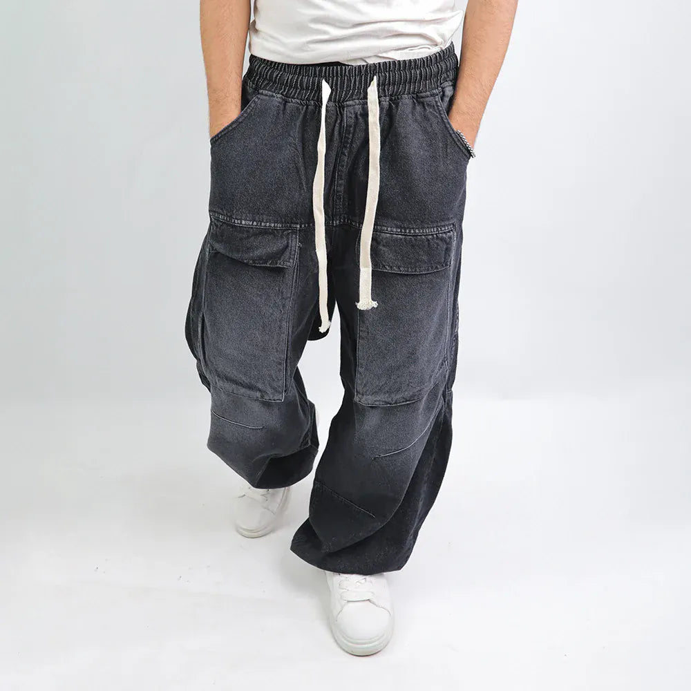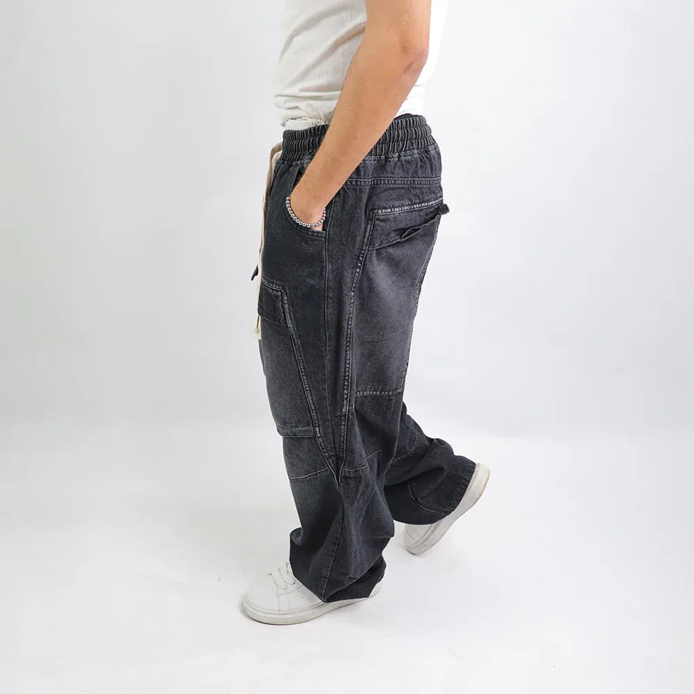 بنطلون وايد ليج رجالي جينز رباعية قطن 100% رمادي غامق جميع المواسم من إيجي وير جينز - bgm04-439-dark grey