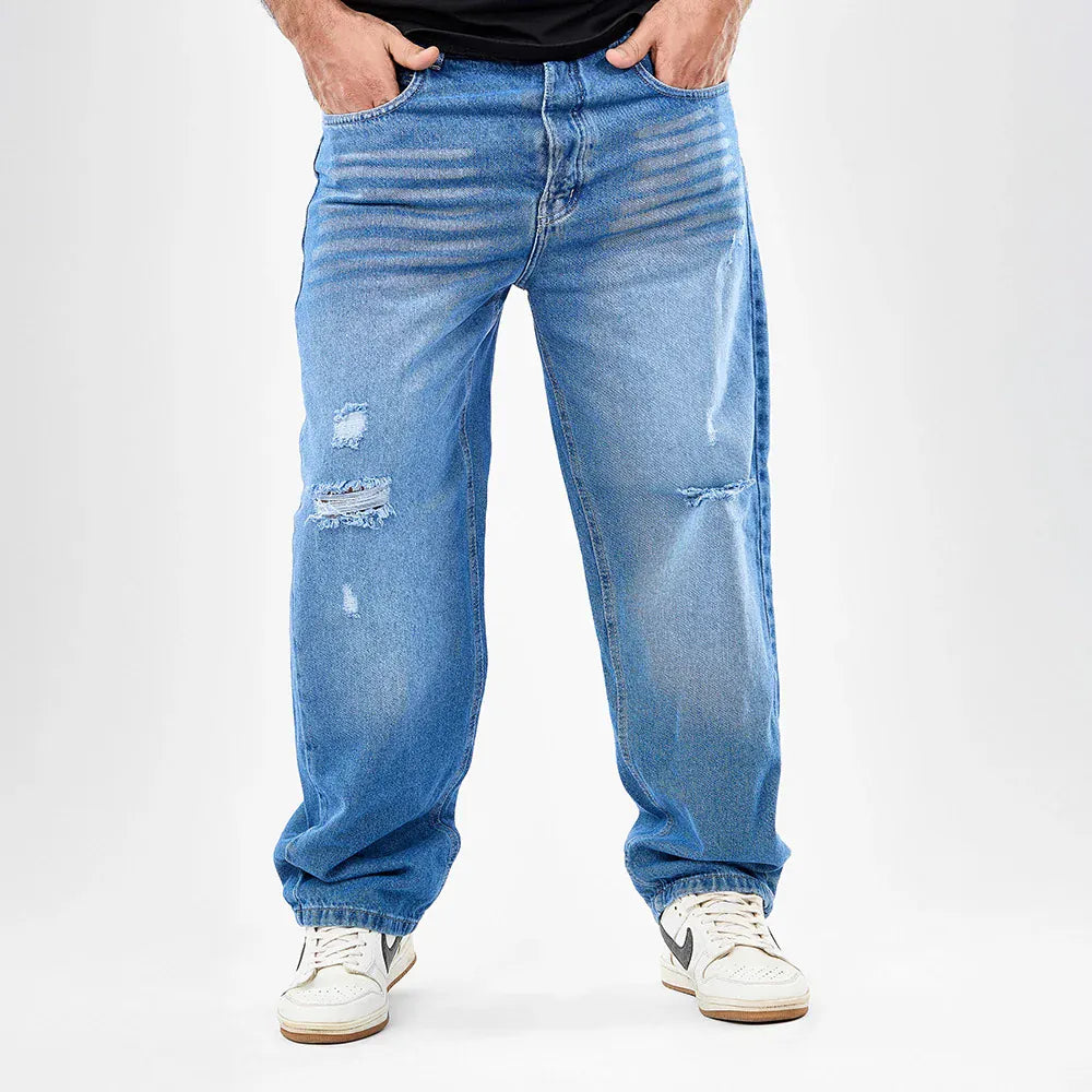 بنطلون وايد ليج رجالي جينز رباعية قطن 100% كحلي وسط جميع المواسم من إيجي وير جينز - bgm010-445-blue