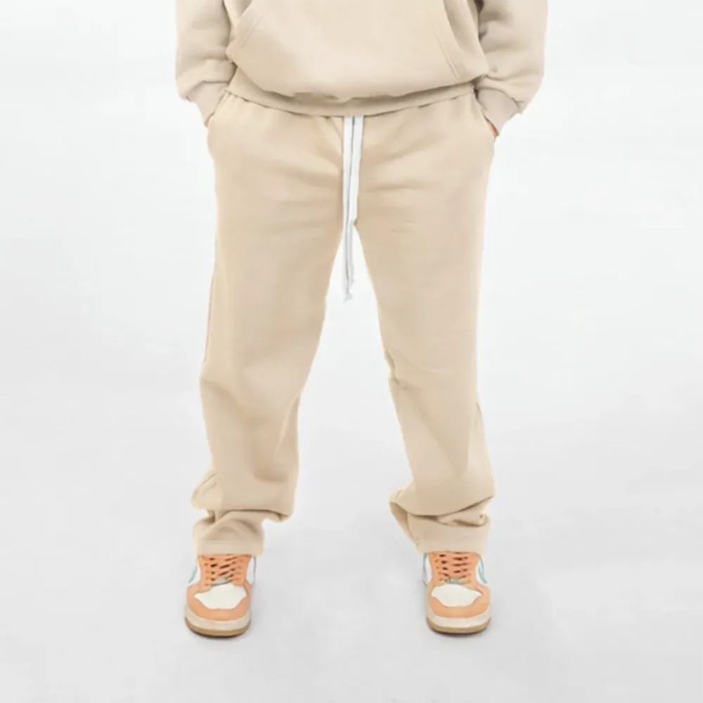 بنطلون وايد ليج ساده للجنسين قطن اسفنجي بيج جميع المواسم من اتش - Pant-Biege