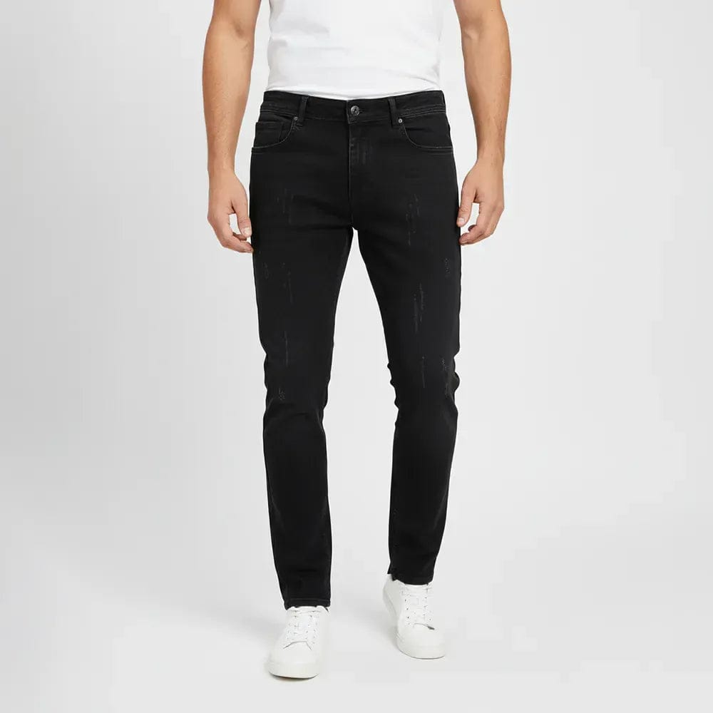 بنطلون جينز مخربش رجالي نيو سكاي ليكرا اسود جميع المواسم من اس كيه اتش - 113031-BK