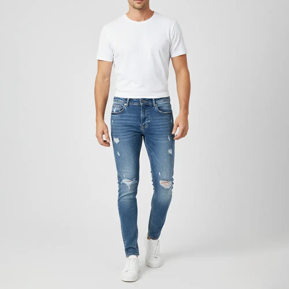 بنطلون جينز تقطيع رجالي نيو سكاي قطن رمادي غامق جميع المواسم من اس كيه اتش - 111793-DJ