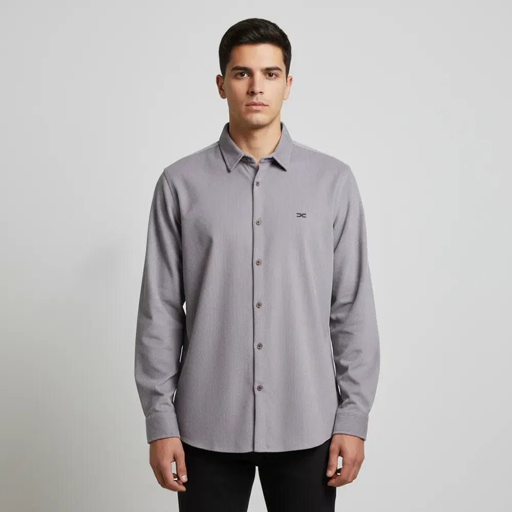 قميص مضلع ساده رجالي قطيفه رمادي شتوي من اس كيه اتش - 112893-GY