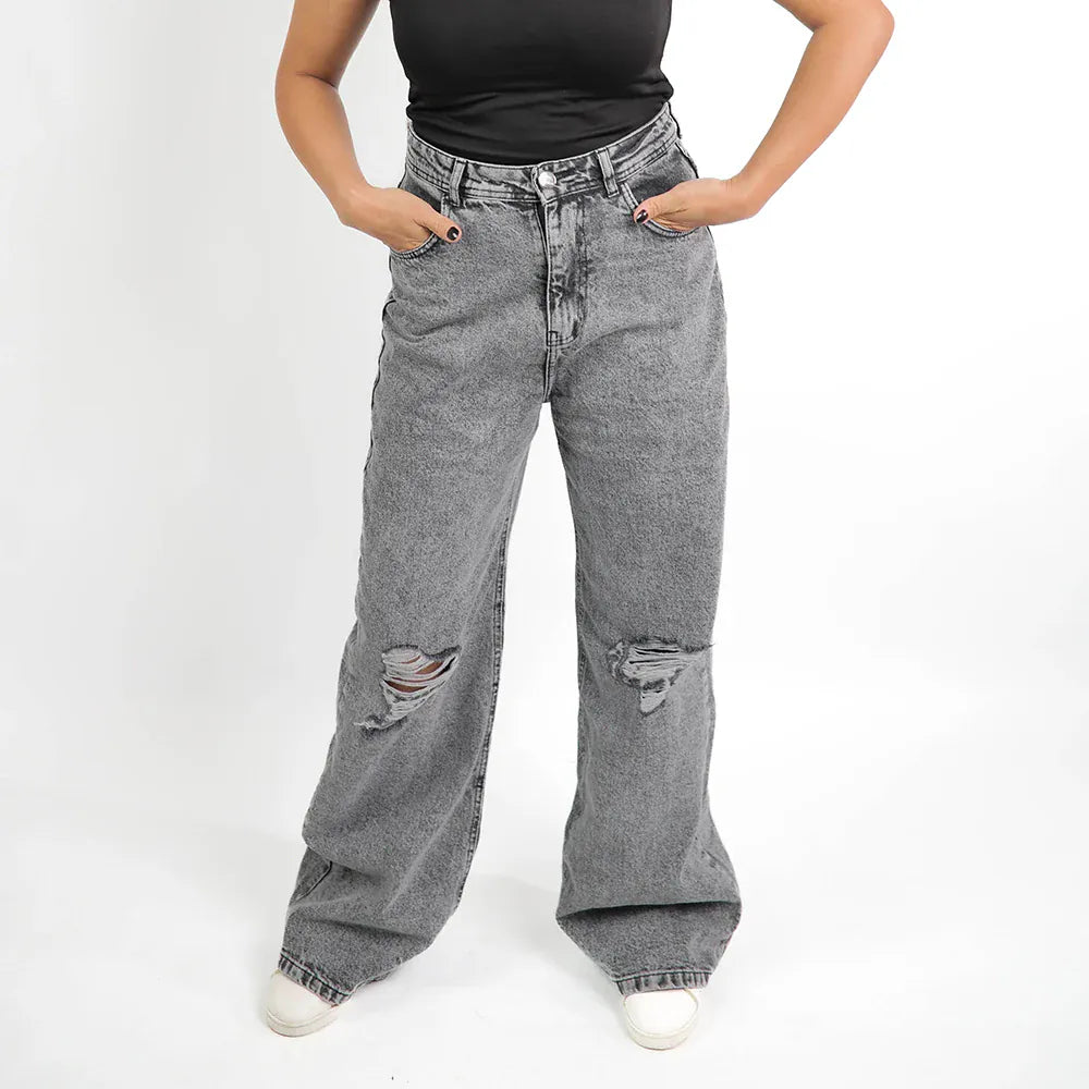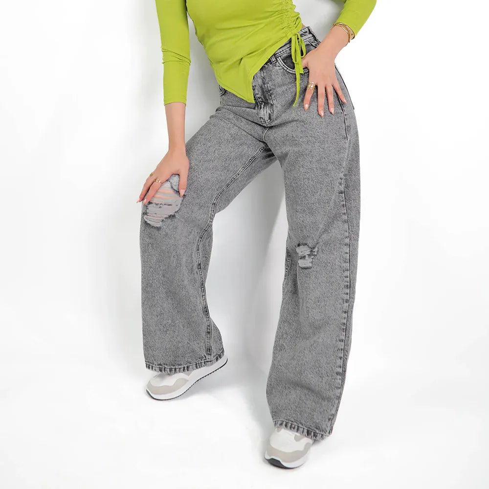 بنطلون وايد ليج حريمي جينز رباعيه قطن 100 % رمادي فاتح جميع المواسم من ايجي وير جينز - EG045-371-LIGHTGREY