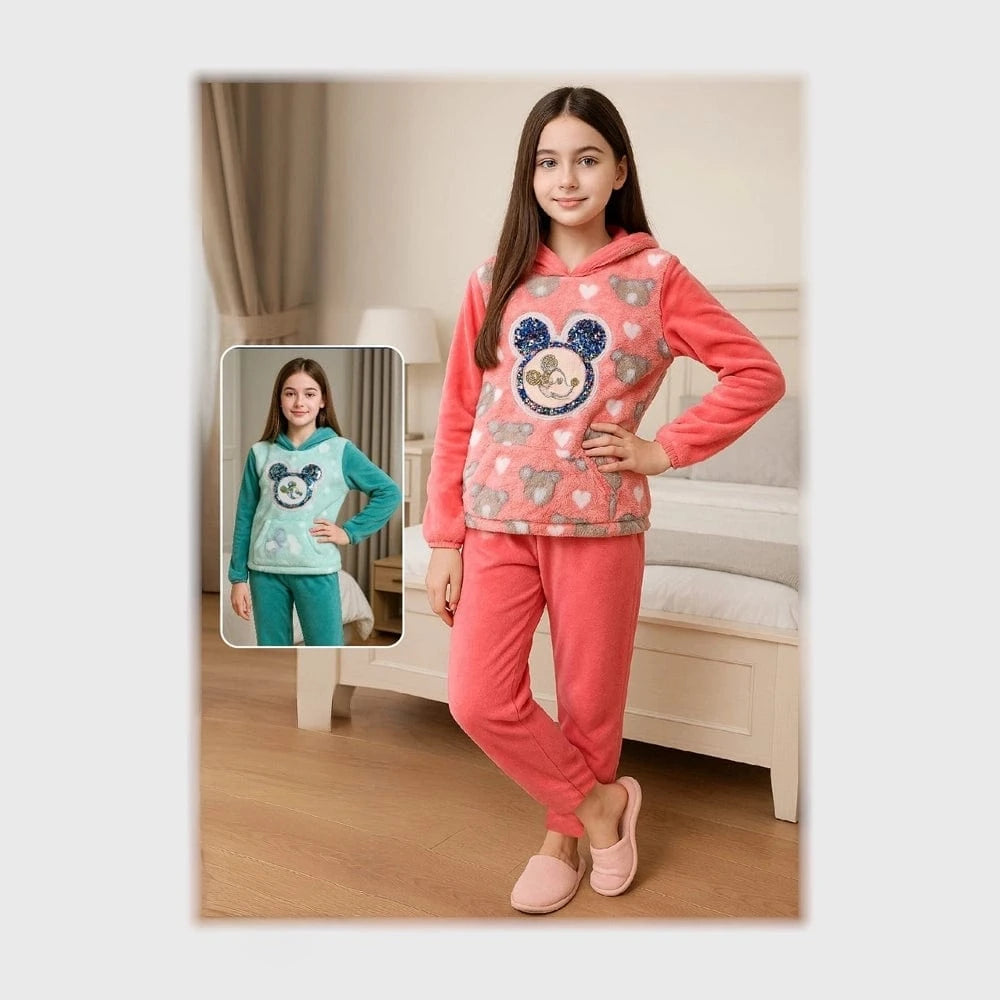 بيجامه كابيشوة مطبوع بناتى بولار في هايدي مستورد الوان متعدده شتوي من ايه ال واي - 140812