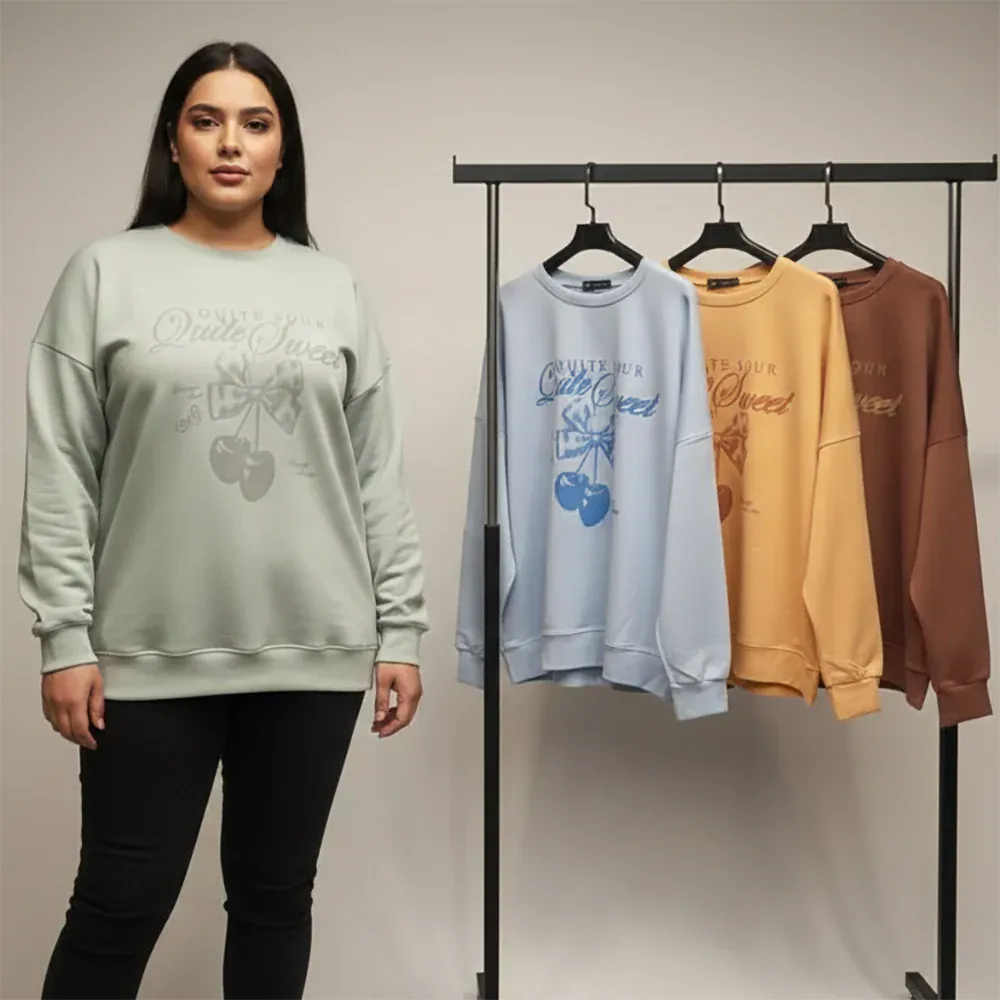 المقاسات: M - L - XL العلامة التجارية: دبيو بي نوع المنتج : سويت شيرت اللون: الوان متعددة وصف المنتج: سويتشيرت راوند مطبوع الخامة: سمر الفئة المستهدفة: حريمى