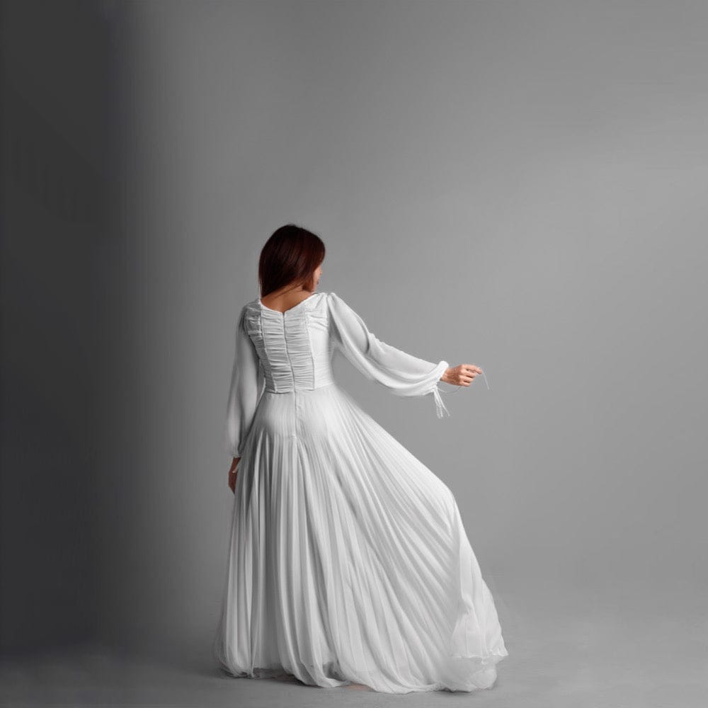 فستان طويل حريمي شيفون ابيض حميع المواسم من ارتوتي -1053-white