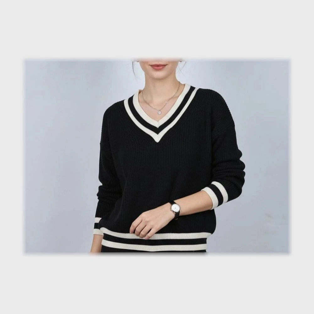 بلوفر رقبه V تريكو حريمي تريكو الوان متعددة شتوي من إم كيه إم فاشون - 100