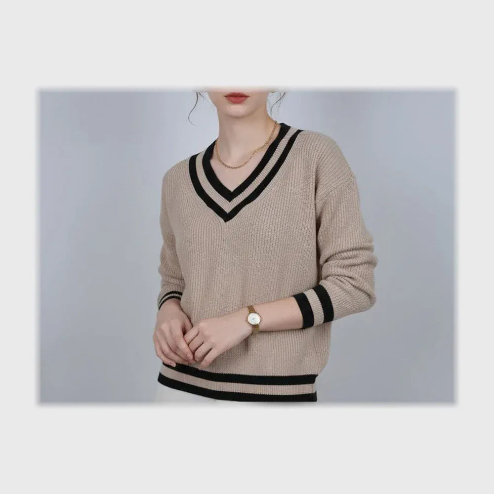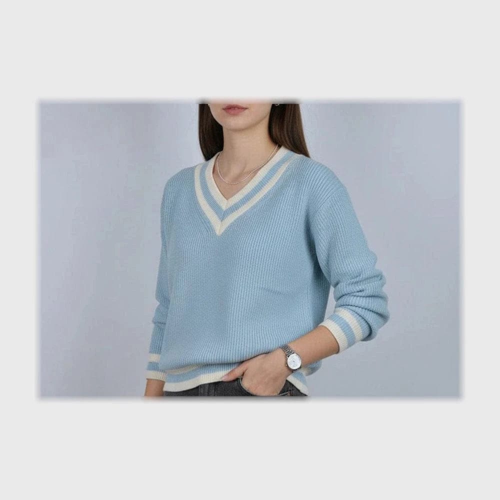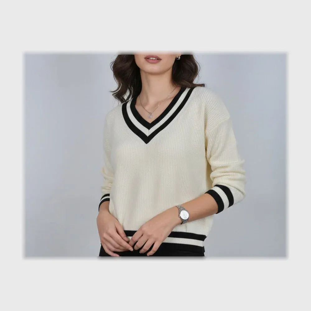 بلوفر رقبه V تريكو حريمي تريكو الوان متعددة شتوي من إم كيه إم فاشون - 100