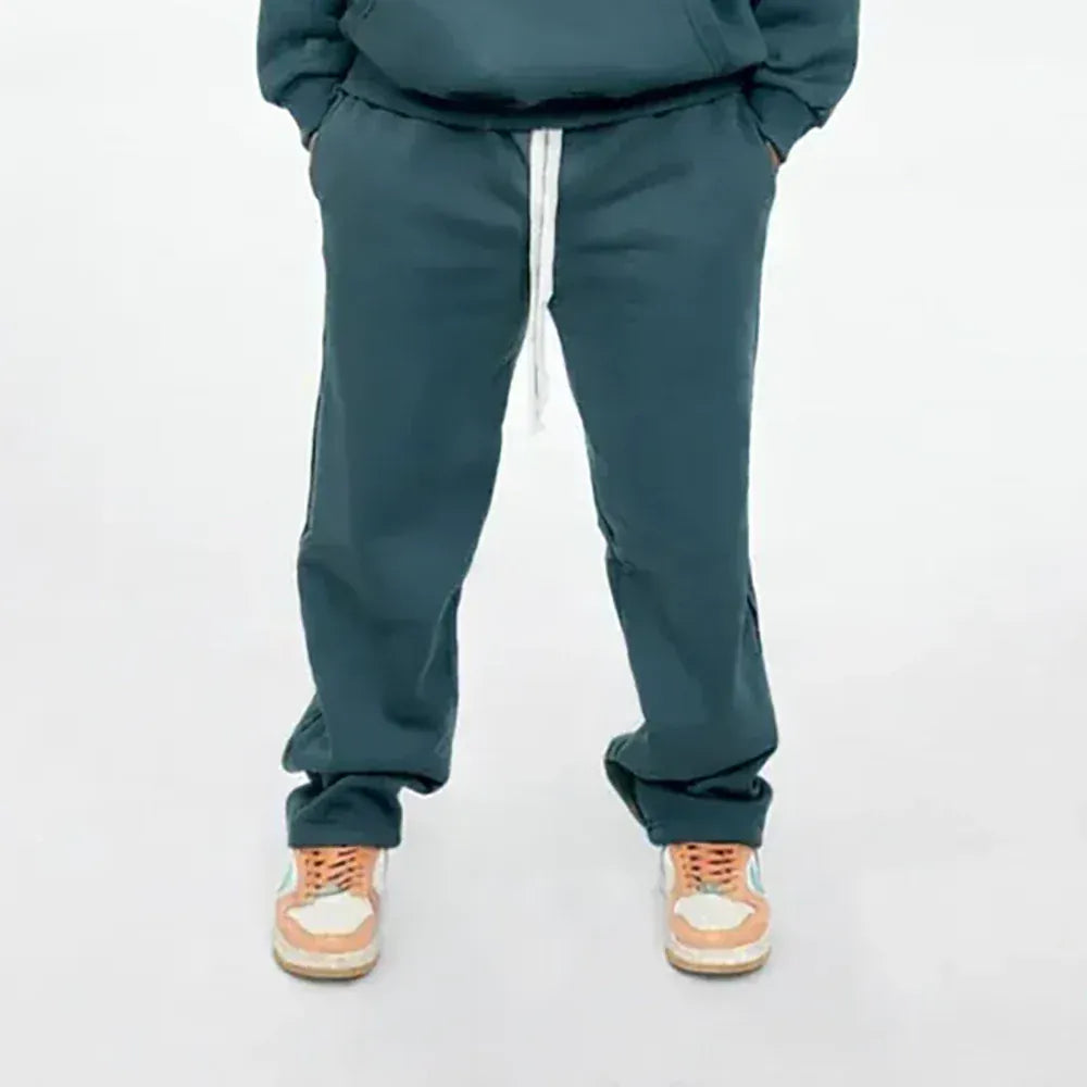 بنطلون وايد ليج ساده للجنسين قطن اسفنجي بترولي جميع المواسم من اتش - Pant-Petrol