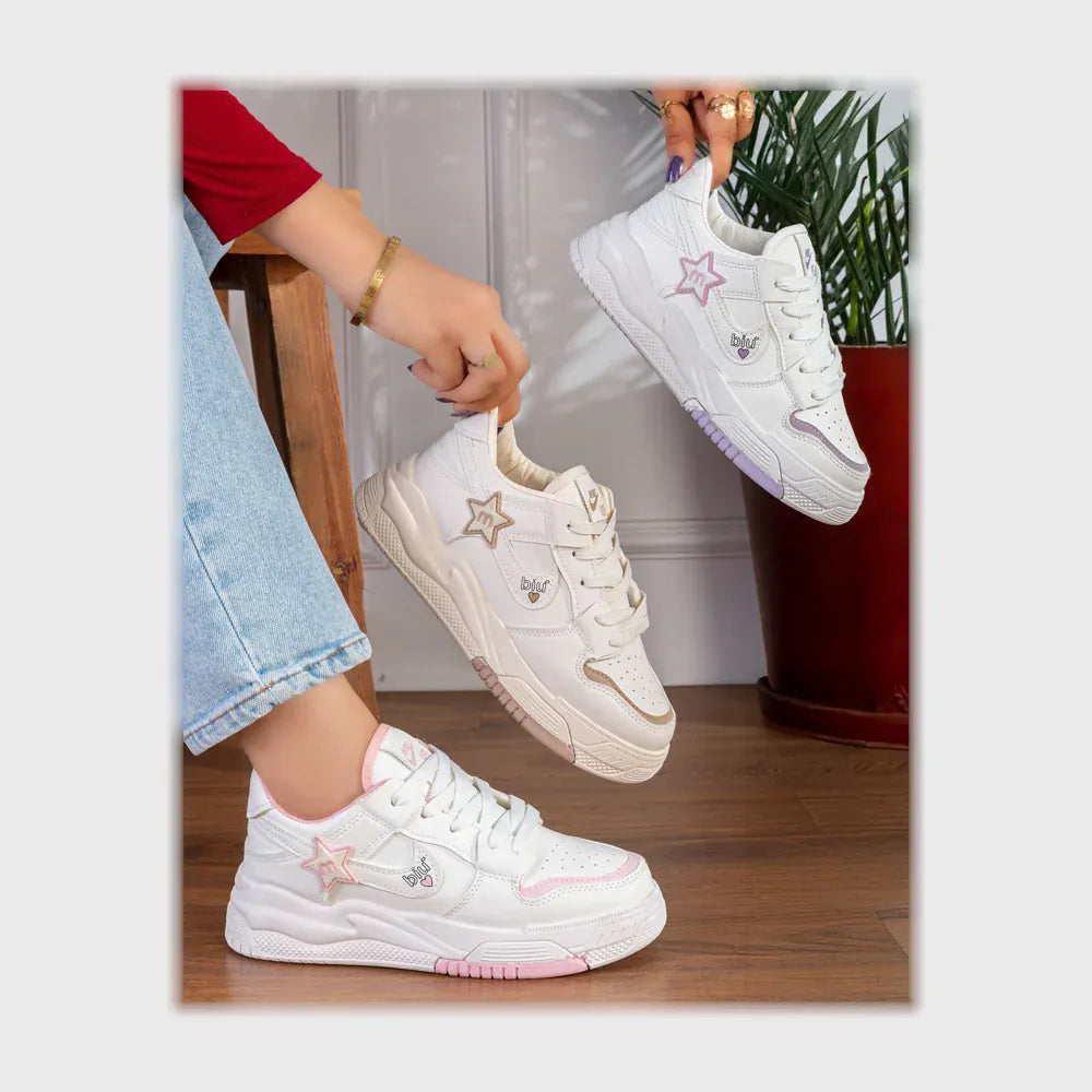حذاء سنيكرز حريمى فوندي جلد إسكاي مستورد ونعل PVC حقن الوان متعددة جميع المواسم من إس آند كيه يويو ميكس - r-4165nl