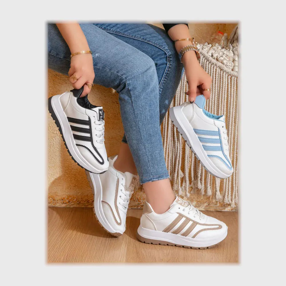 حذاء سنيكرز حريمى فوندي جلد إسكاي مستورد ونعل PVC حقن الوان متعددة جميع المواسم من كيو آر شوز - 29028