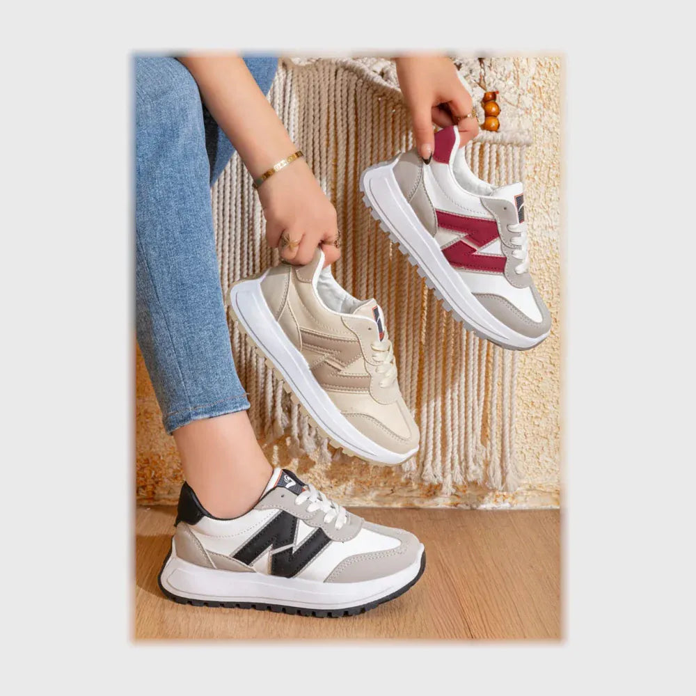 حذاء سنيكرز حريمى فوندي جلد إسكاي مستورد ونعل PVC حقن الوان متعددة جميع المواسم من كيو آر شوز - 29032