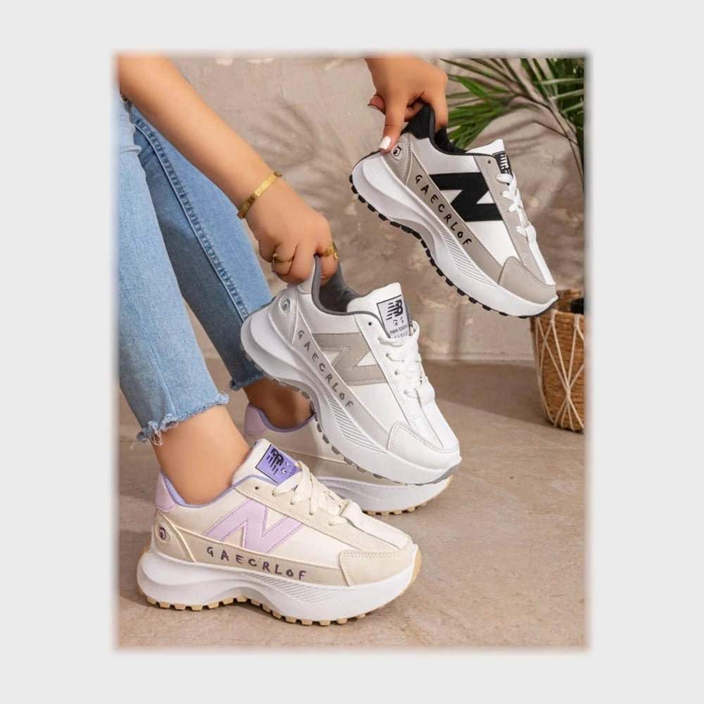 حذاء سنيكرز حريمي فوندي جلد إسكاي مستورد ونعل PVC حقن الوان متعددة جميع المواسم من كيو آر شوز - SB24