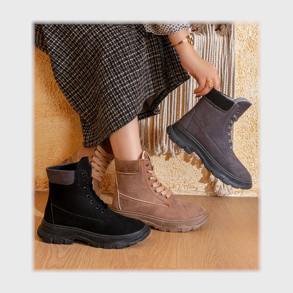 المقاسات: 37-38-39-40-41 العلامة التجارية: الطائر نوع المنتج : حذاء اللون: الوان متعددة وصف المنتج: حذاء هاف بوت الخامة: شمواه الفئة المستهدفة: حريمى