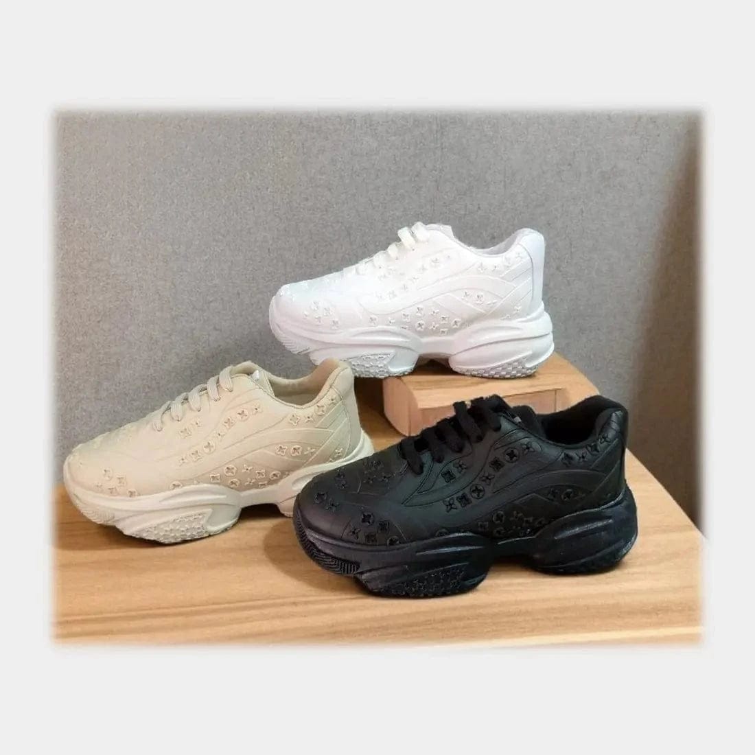 حذاء سنيكرز حريمى فوندي جلد إسكاي مستورد ونعل PVC حقن الوان متعددة جميع المواسم من آل وحيد-L-969