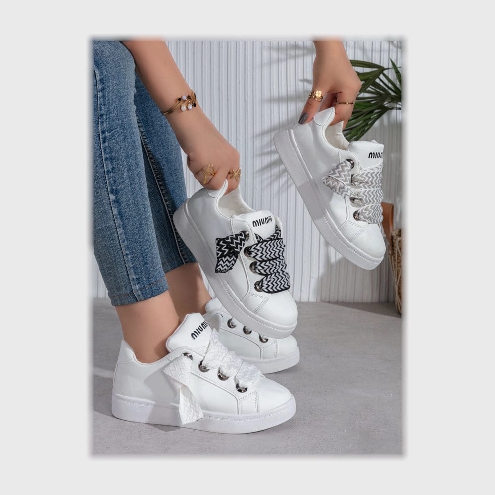 حذاء سنيكرز حريمى فوندي جلد إسكاي مستورد ونعل PVC حقن الوان متعددة جميع المواسم من دودو - 1109