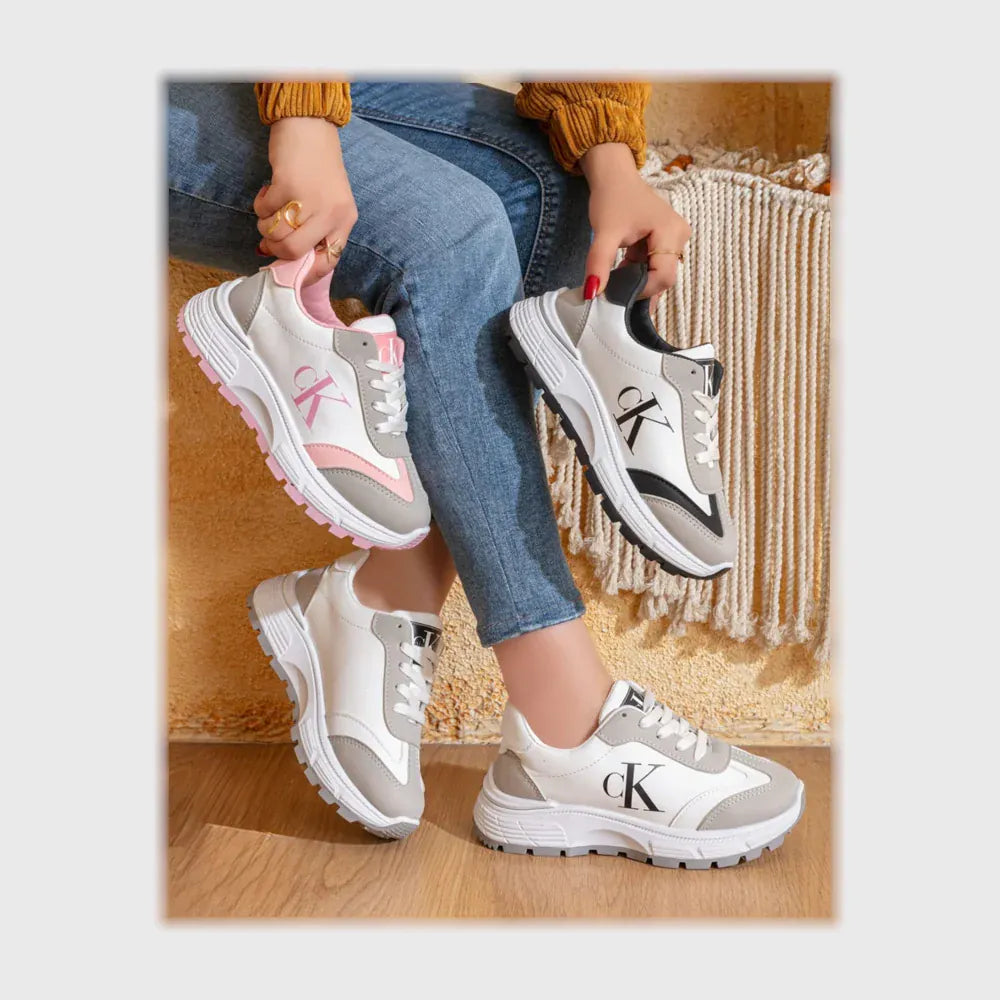 حذاء سنيكرز حريمى فوندي جلد إسكاي مستورد ونعل PVC حقن الوان متعددة جميع المواسم من كيو آر شوز - 2971