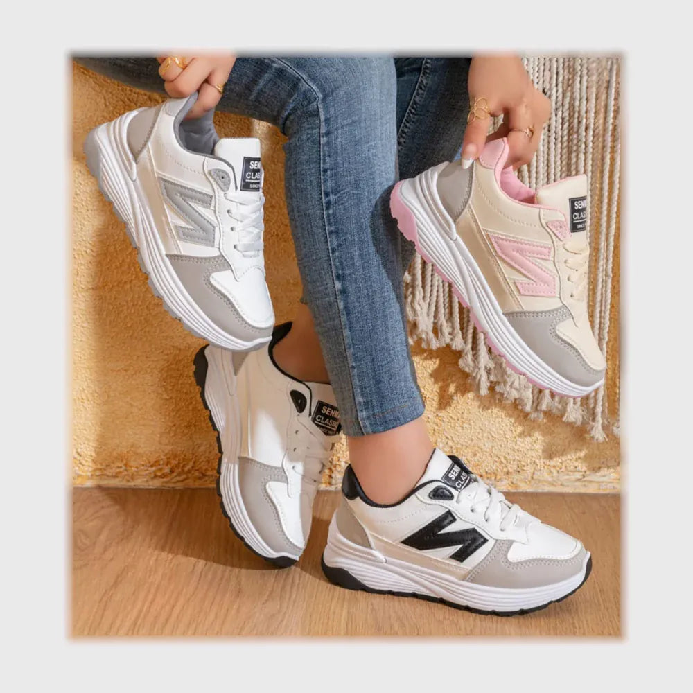 حذاء سنيكرز حريمى فوندي جلد إسكاي مستورد ونعل PVC حقن الوان متعددة جميع المواسم من كيو آر شوز - 2981