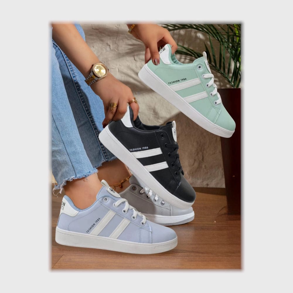 حذاء سنيكرز حريمى فوندي جلد إسكاي مستورد ونعل PVC حقن الوان متعددة جميع المواسم من الشماع - h-142-1