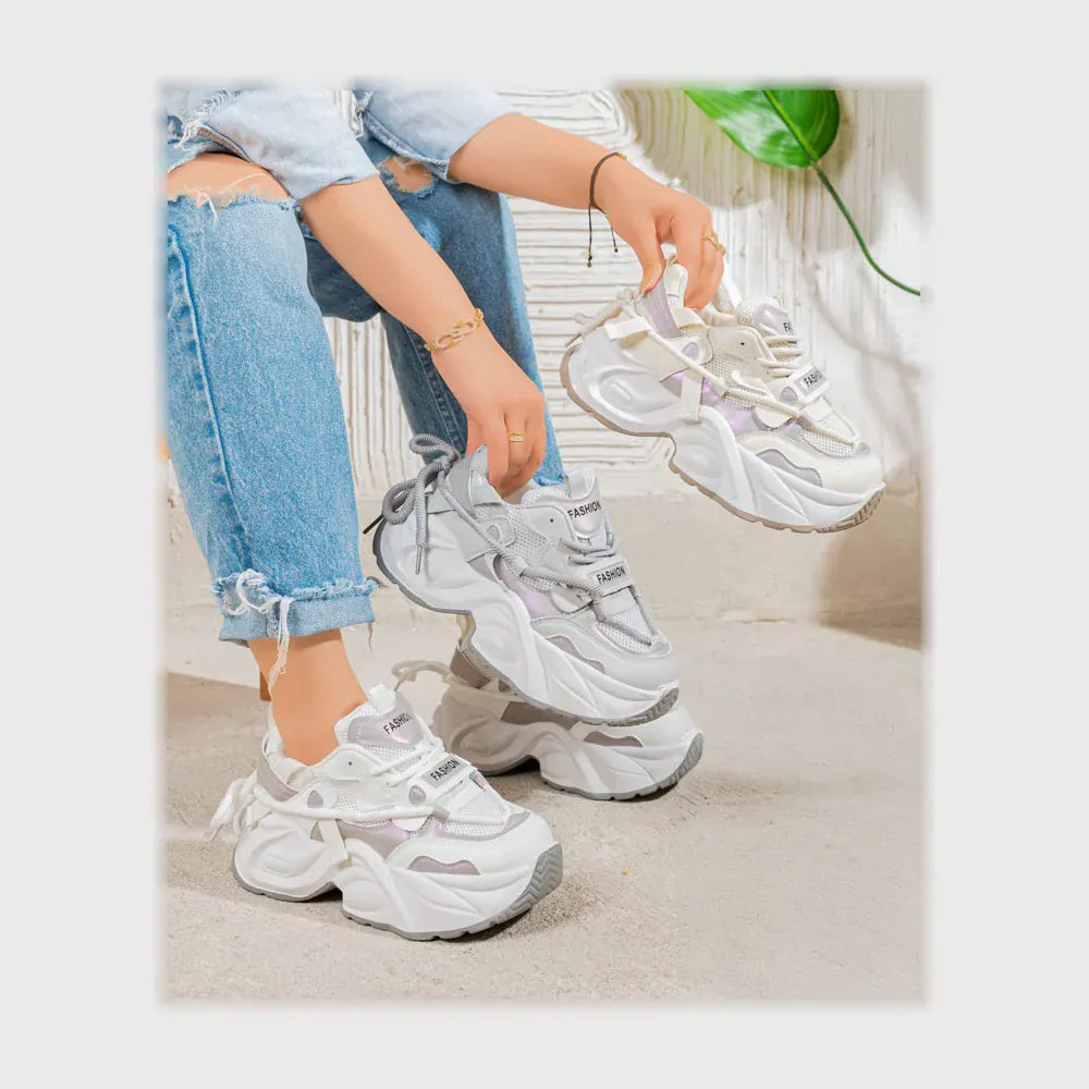 حذاء سنيكرز حريمى فوندي جلد إسكاي مستورد ونعل PVC حقن الوان متعددة جميع المواسم من ان ستايل - 203