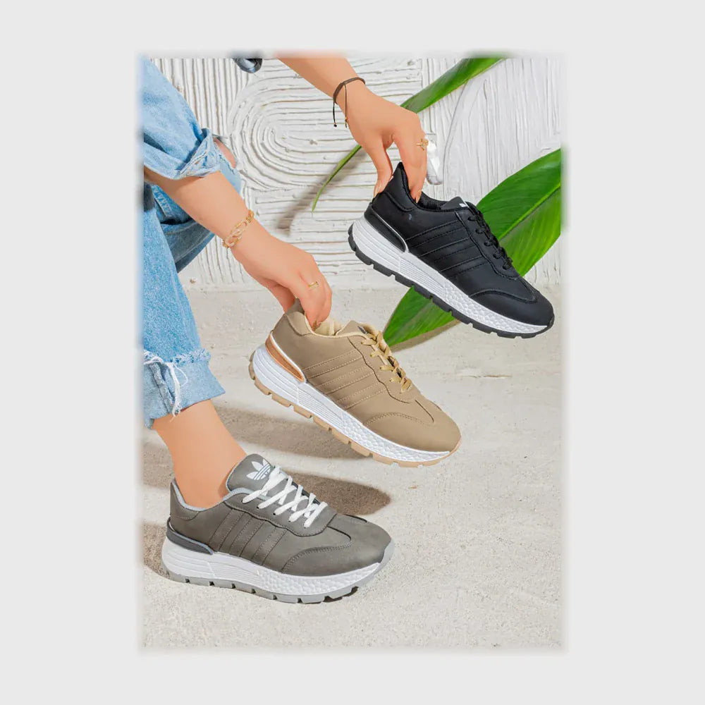 حذاء سنيكرز حريمى فوندي جلد إسكاي مستورد ونعل PVC حقن الوان متعددة جميع المواسم من ان ستايل - K-63