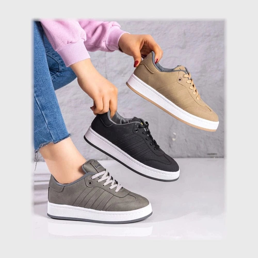 حذاء سنيكرز حريمى فوندي جلد إسكاي مستورد ونعل PVC حقن الوان متعددة جميع المواسم من ان ستايل-K42
