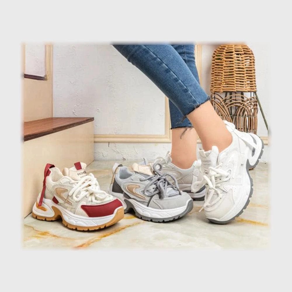 حذاء سنيكرز حريمى فوندي جلد إسكاي مستورد ونعل PVC حقن الوان متعددة جميع المواسم من ان ستايل-SR24