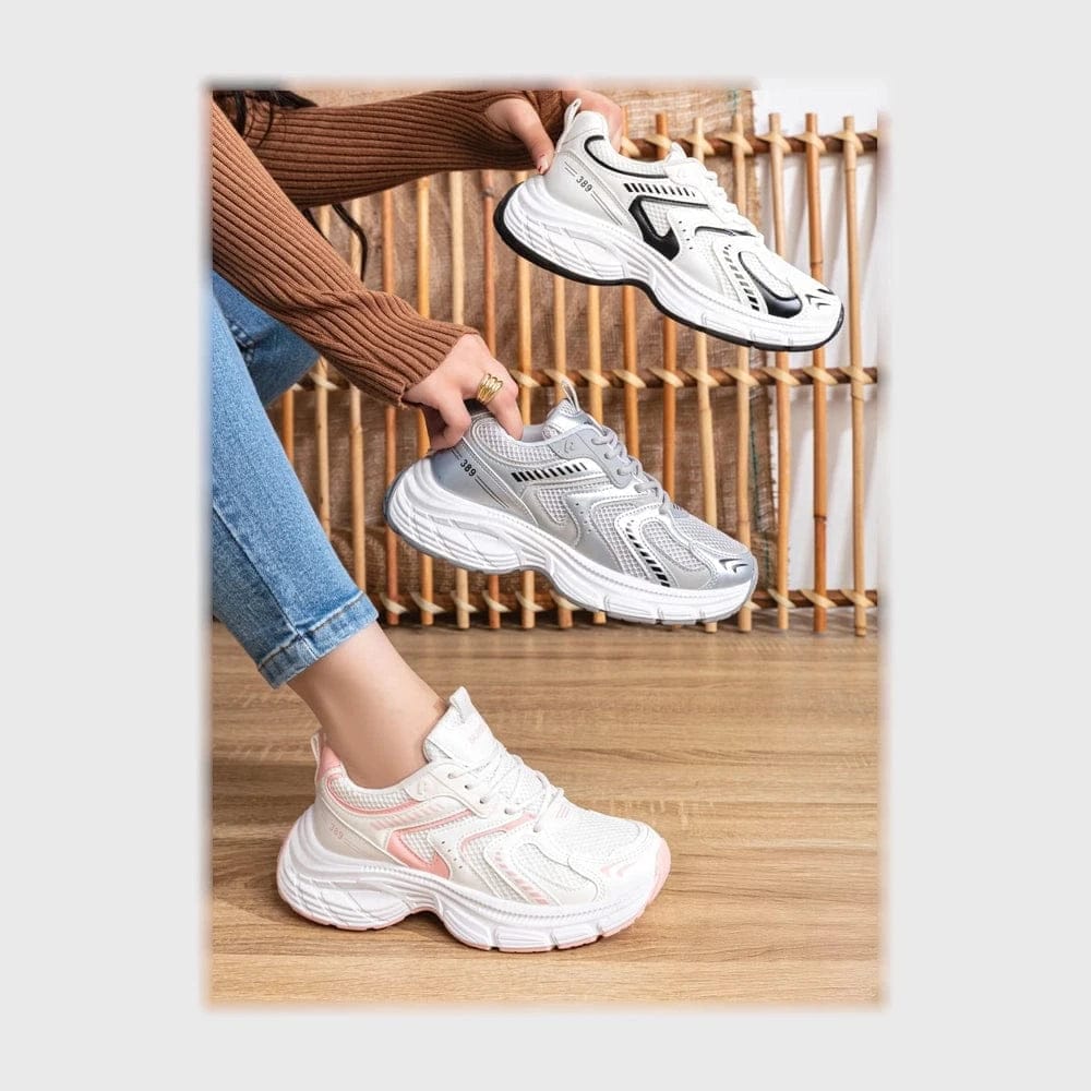 حذاء سنيكرز حريمى فوندي جلد إسكاي مستورد ونعل PVC حقن الوان متعددة جميع المواسم من ان ستايل-SR6