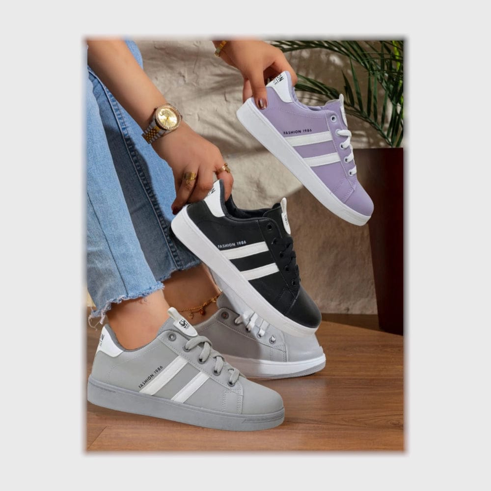 حذاء سنيكرز حريمي فوندي جلد إسكاي مستورد ونعل PVC حقن الوان متعددة جميع المواسم من الشماع - h-142