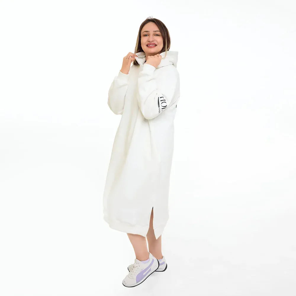 سويتشيرت هودي اوفر سايز طويل حريمى قطن اسفنجي ابيض شتوي من اتش - Long Hood-White