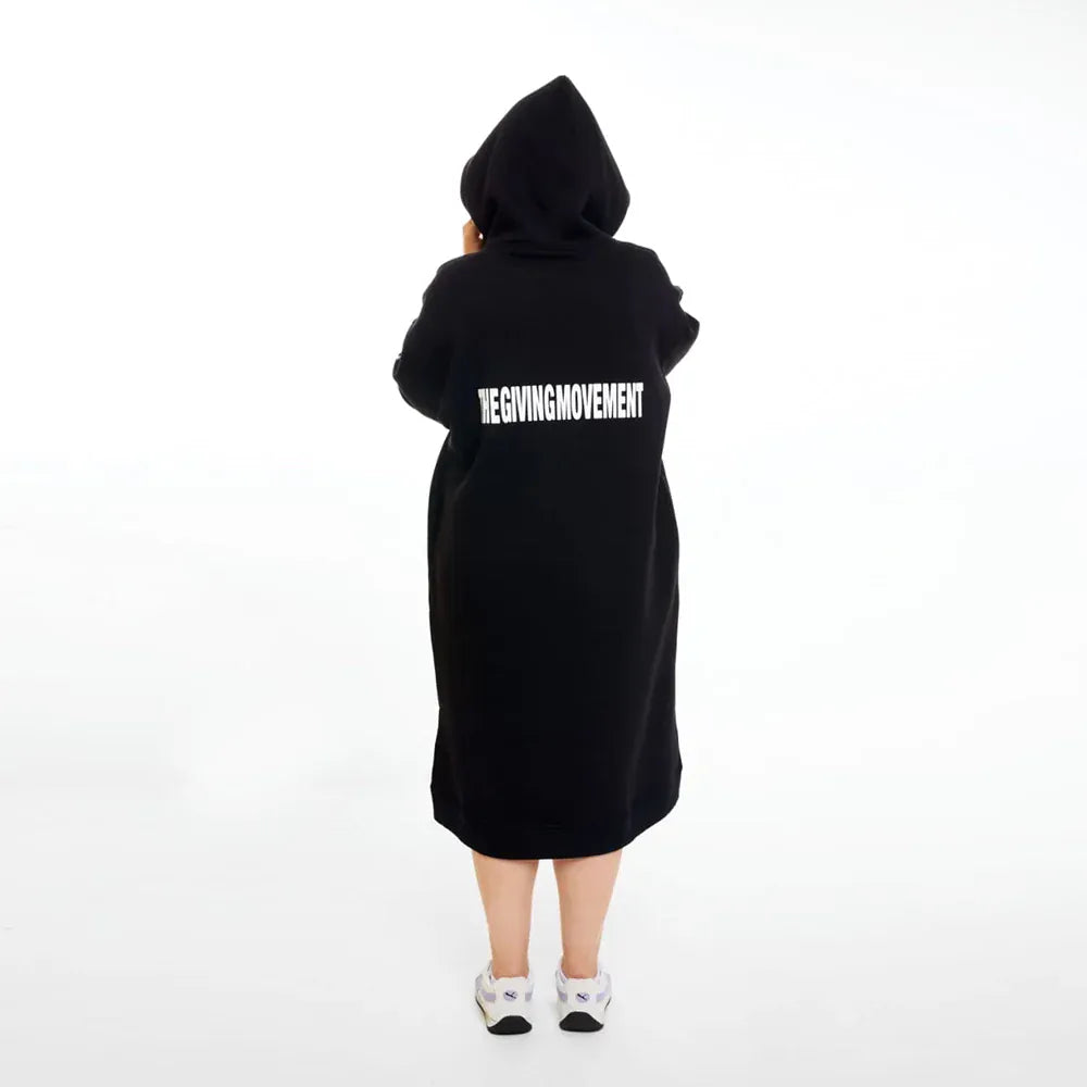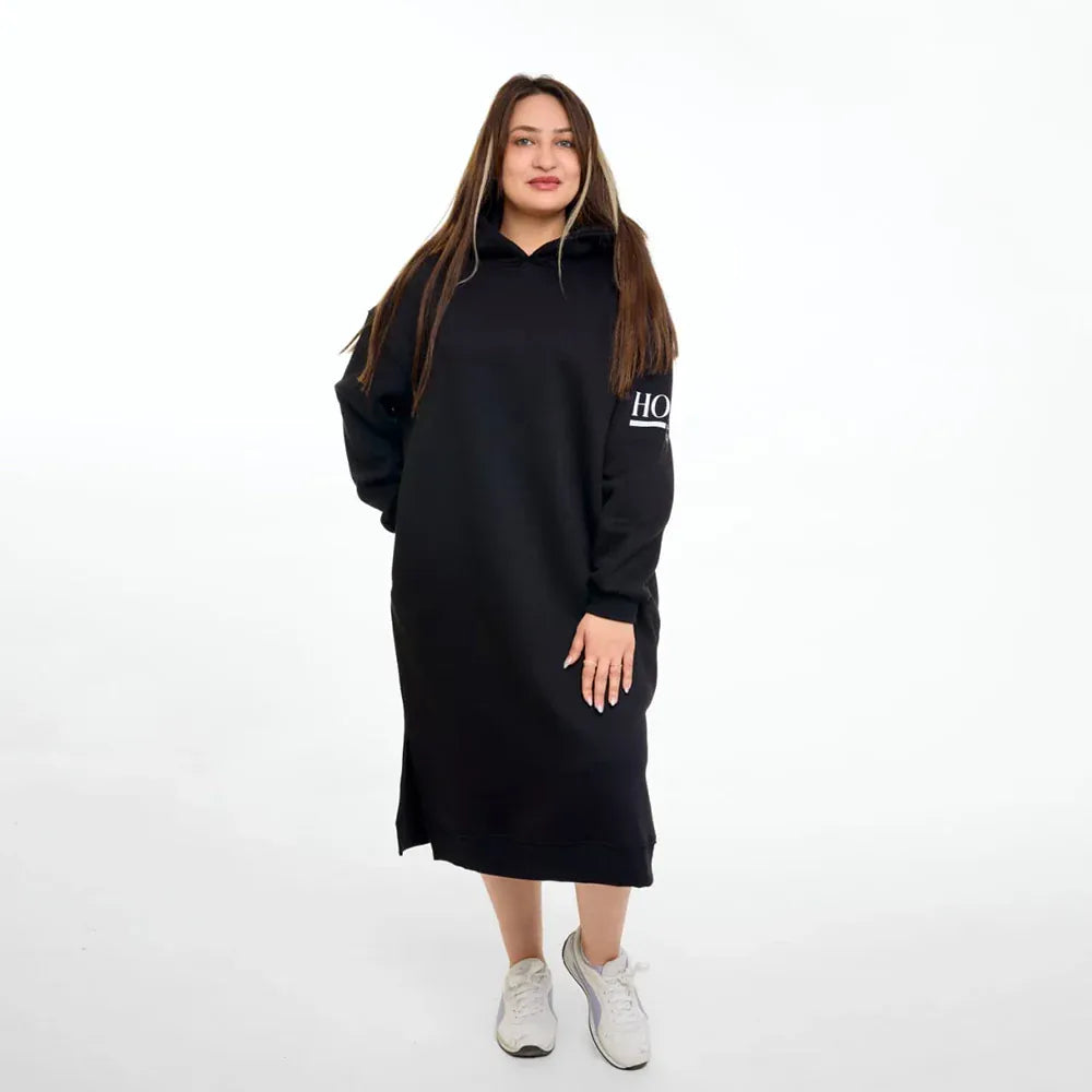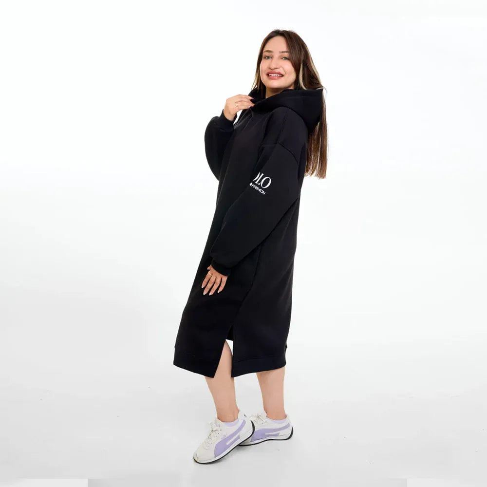 سويتشيرت هودي اوفر سايز طويل حريمى قطن اسفنجي اسود شتوي من اتش - Long Hood-Black
