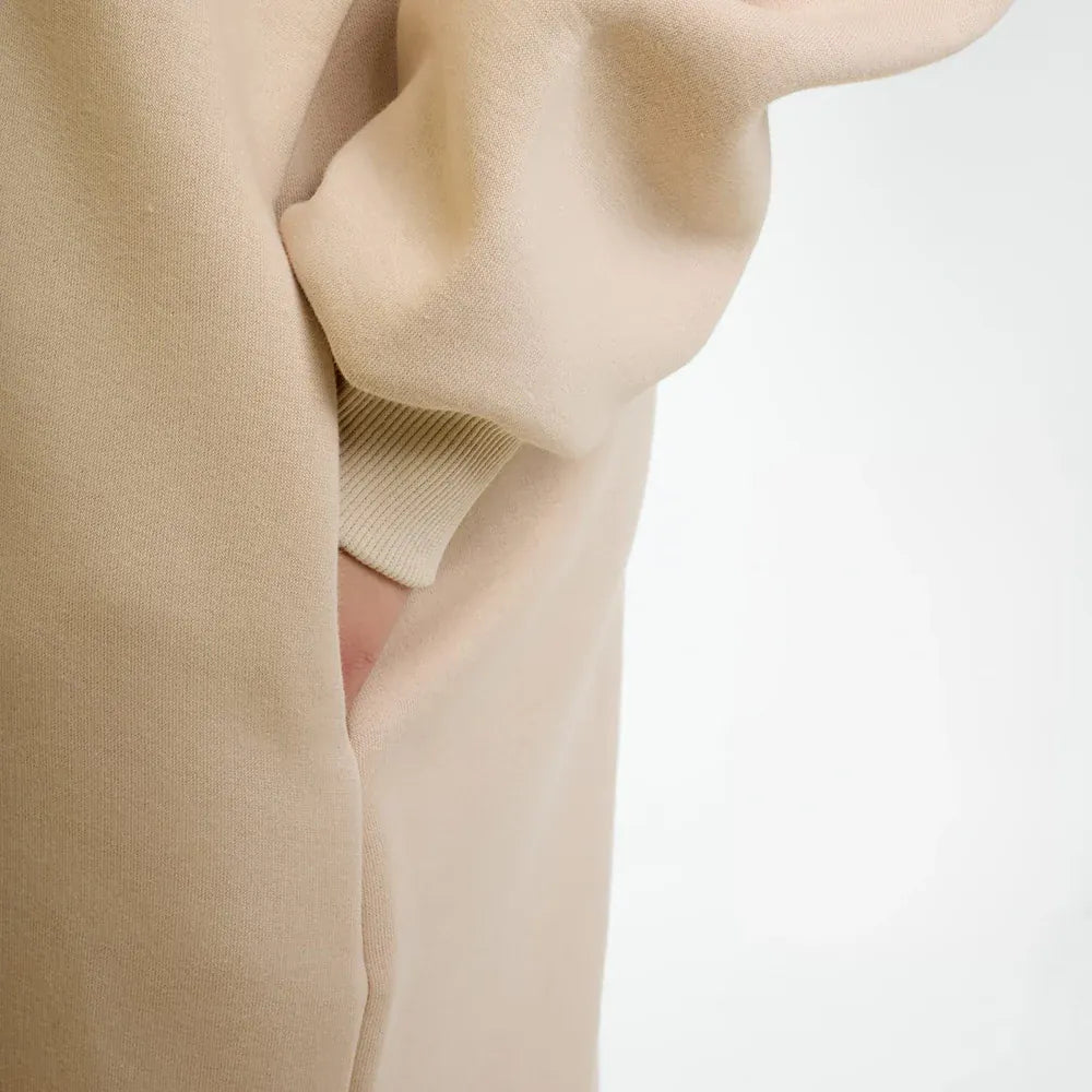 سويتشيرت هودي اوفر سايز طويل حريمى قطن اسفنجي بيج شتوي من اتش - Long Hood-Beige